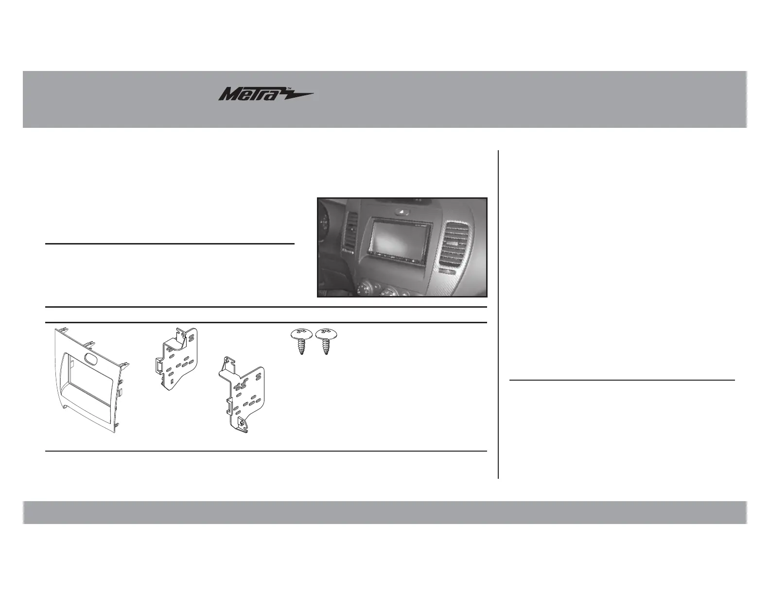 Læs gratis den danske manual til Metra 95-7356B (4 sider) i kategorien Ikke kategoriseret. Denne vejledning er vurderet som hjælpsom af 12 personer og har en gennemsnitlig bedømmelse på 4.7 stjerner ud af 6.5 anmeldelser.