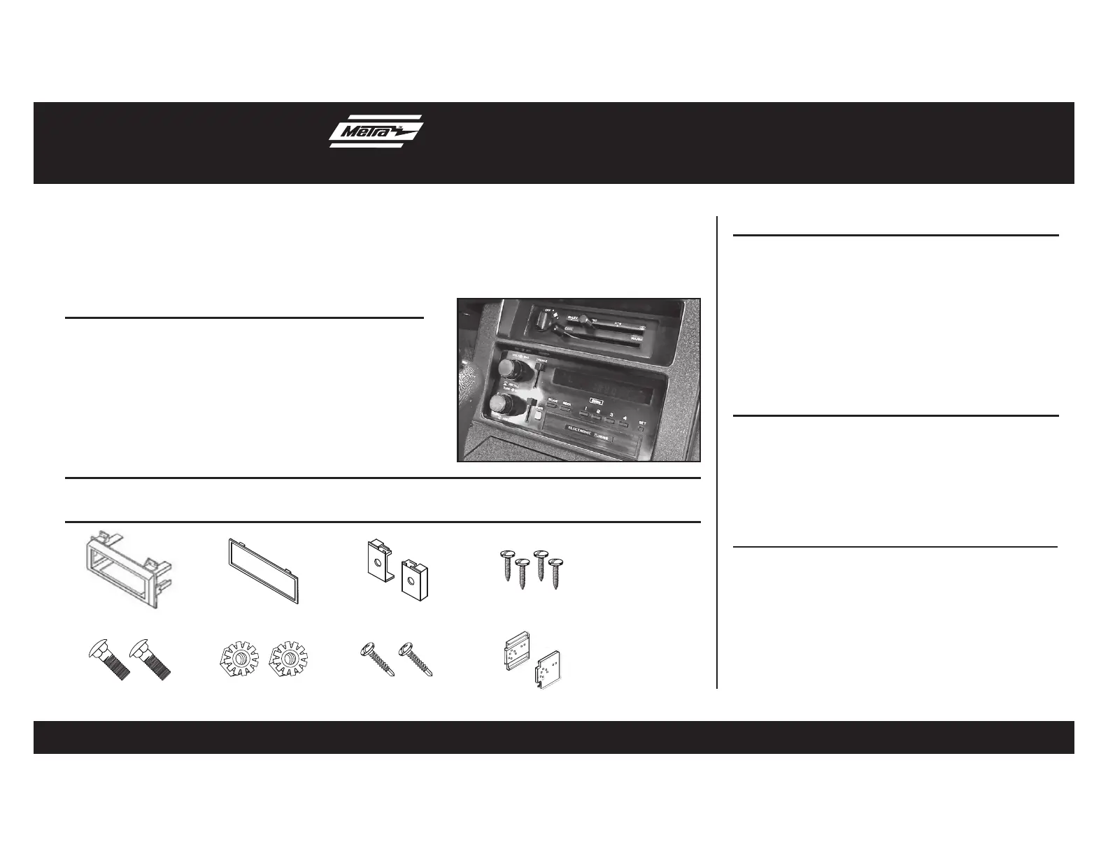 Læs gratis den danske manual til Metra 99-3043 (4 sider) i kategorien Ikke kategoriseret. Denne vejledning er vurderet som hjælpsom af 19 personer og har en gennemsnitlig bedømmelse på 4.4 stjerner ud af 10 anmeldelser.