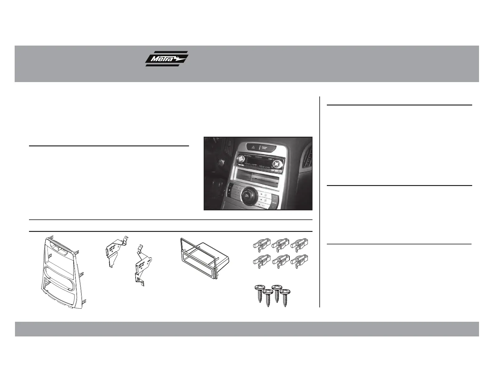 Læs gratis den danske manual til Metra 99-7336S (4 sider) i kategorien Ikke kategoriseret. Denne vejledning er vurderet som hjælpsom af 13 personer og har en gennemsnitlig bedømmelse på 5.0 stjerner ud af 7 anmeldelser.