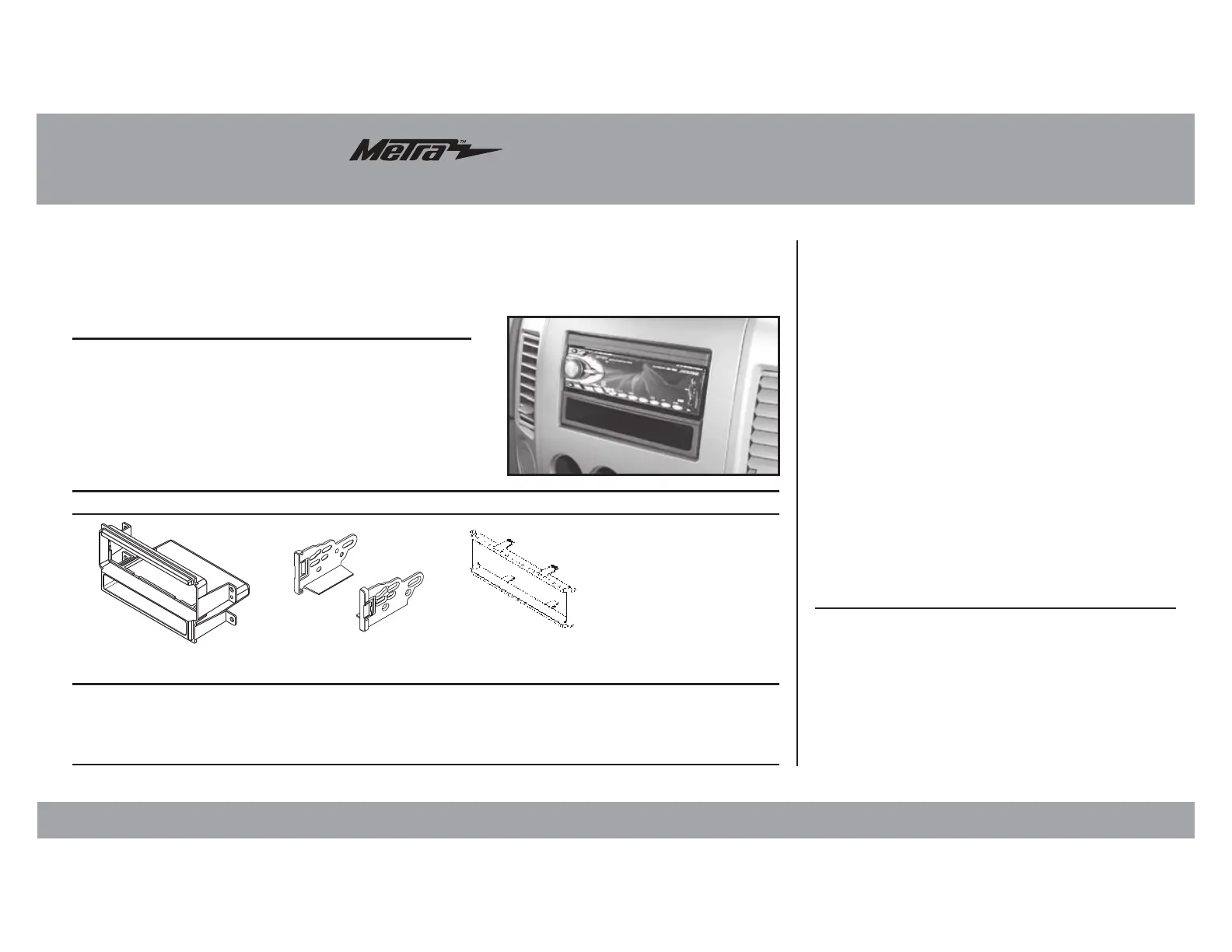 Læs gratis den danske manual til Metra 99-7405 (4 sider) i kategorien Bilradio. Denne vejledning er vurderet som hjælpsom af 2 personer og har en gennemsnitlig bedømmelse på 4.6 stjerner ud af 1.5 anmeldelser.