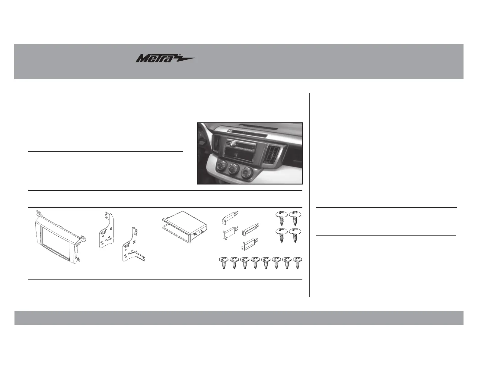 Læs gratis den danske manual til Metra 99-8242G (4 sider) i kategorien Ikke kategoriseret. Denne vejledning er vurderet som hjælpsom af 22 personer og har en gennemsnitlig bedømmelse på 4.8 stjerner ud af 11.5 anmeldelser.