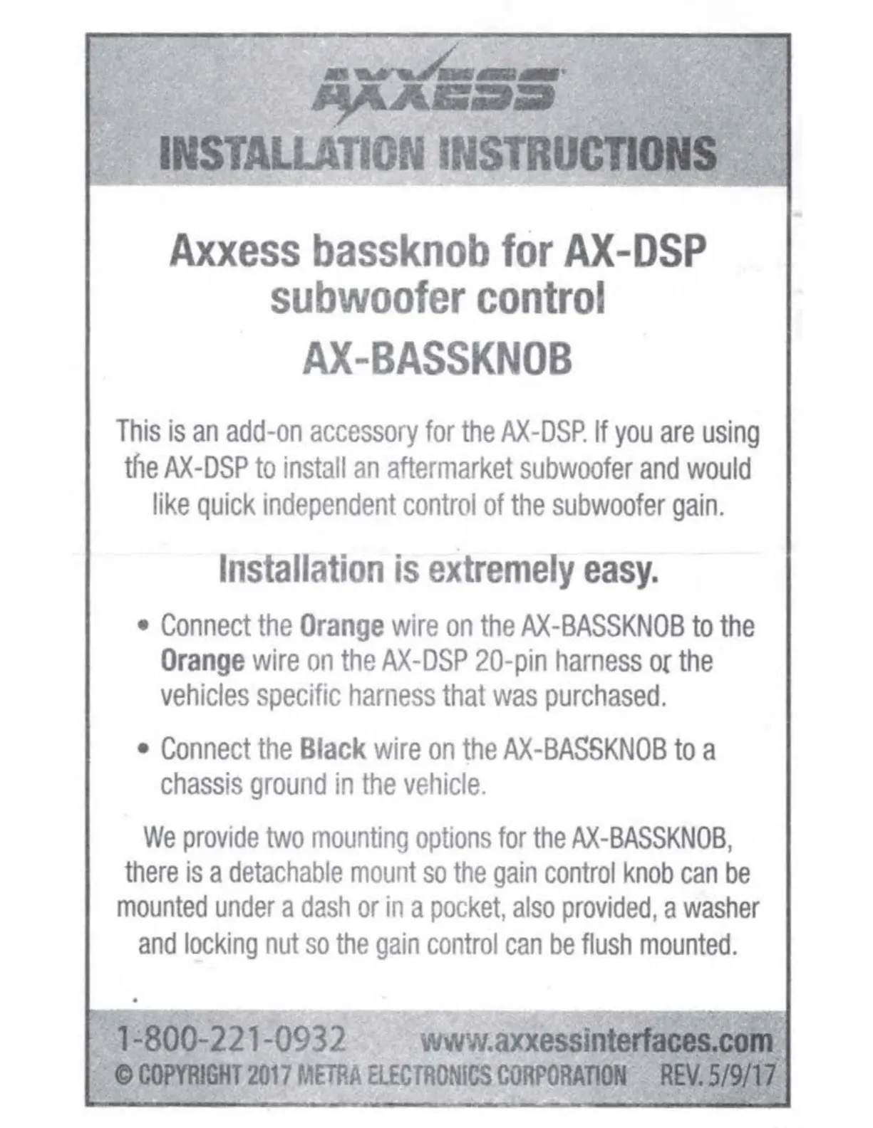 • AXDSPL-GL9 vehicle T-harness • Bass knob