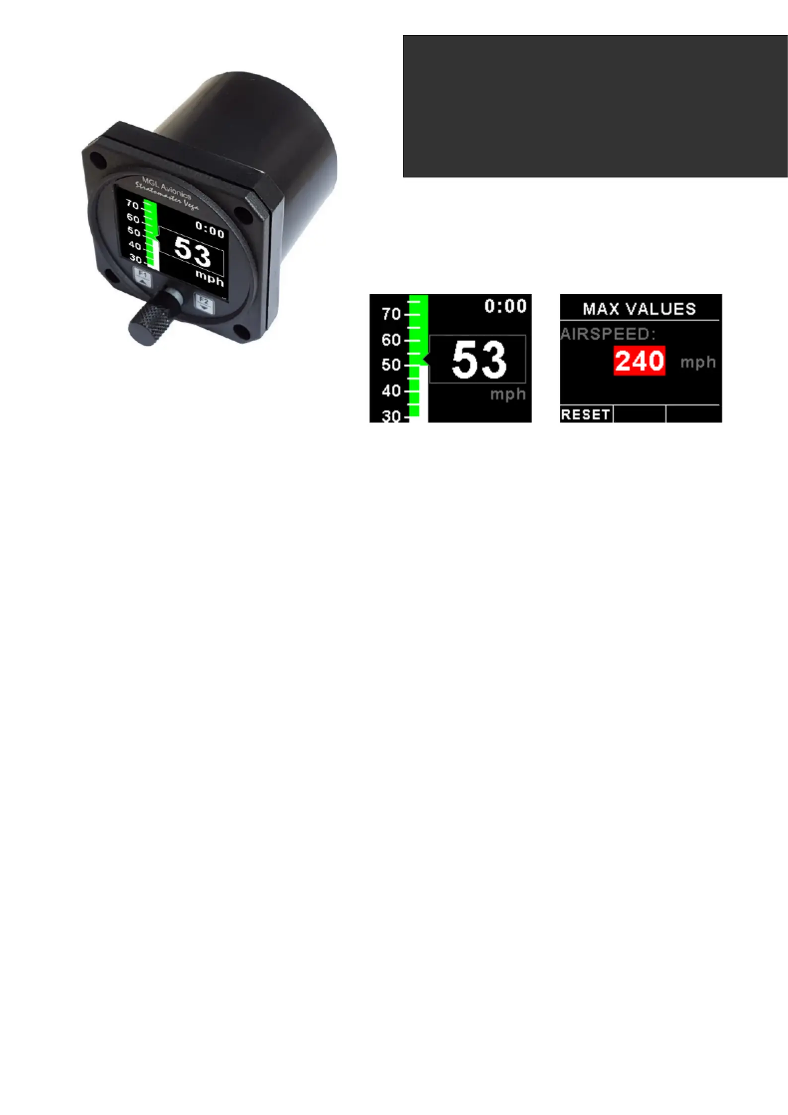 • Records maximum airspeed reached in permanent memory