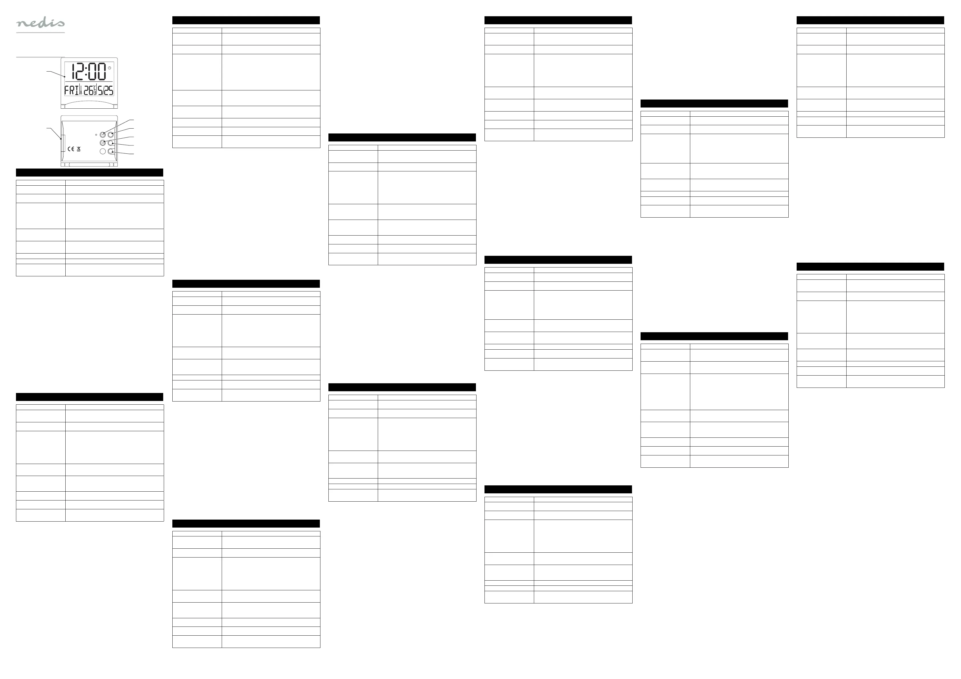 • Alarm: Druk op de knop om de tijd, de sluimterinterval en de alarmtoon