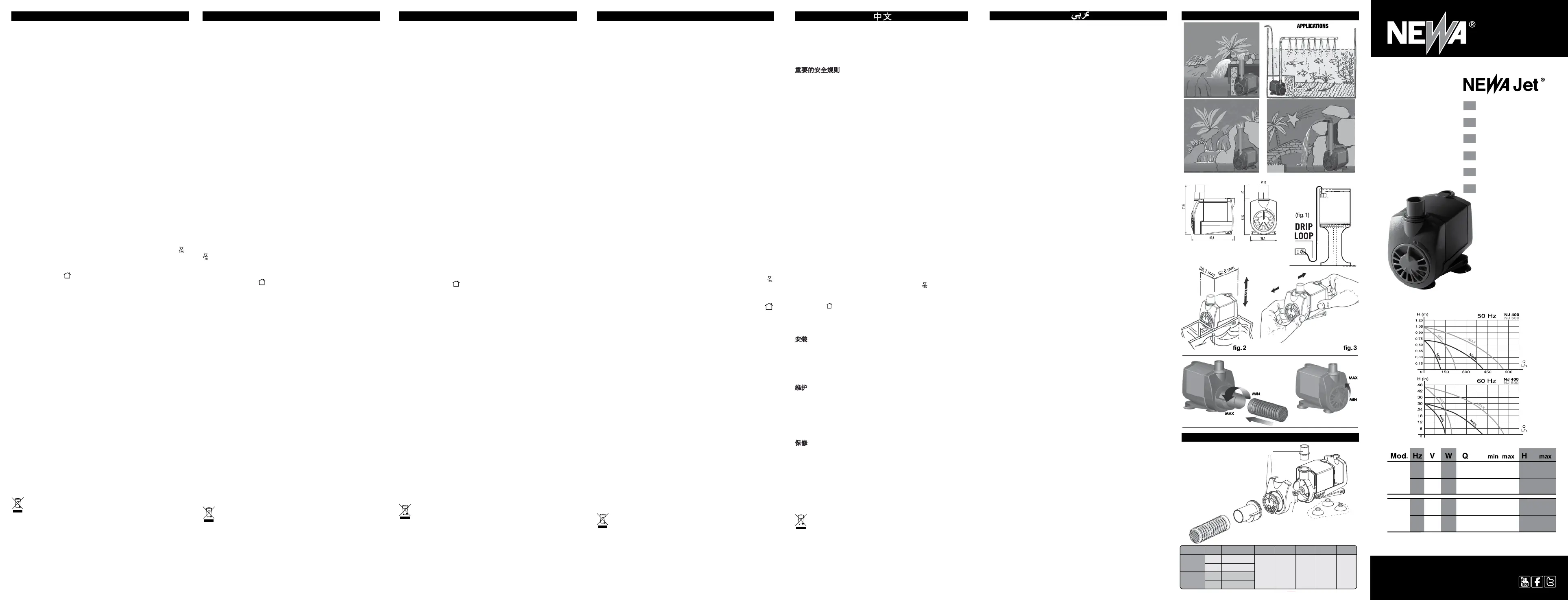 NEWA Jet 潜水泵符合现行安全标准CEE EN 60335-2-41的规定