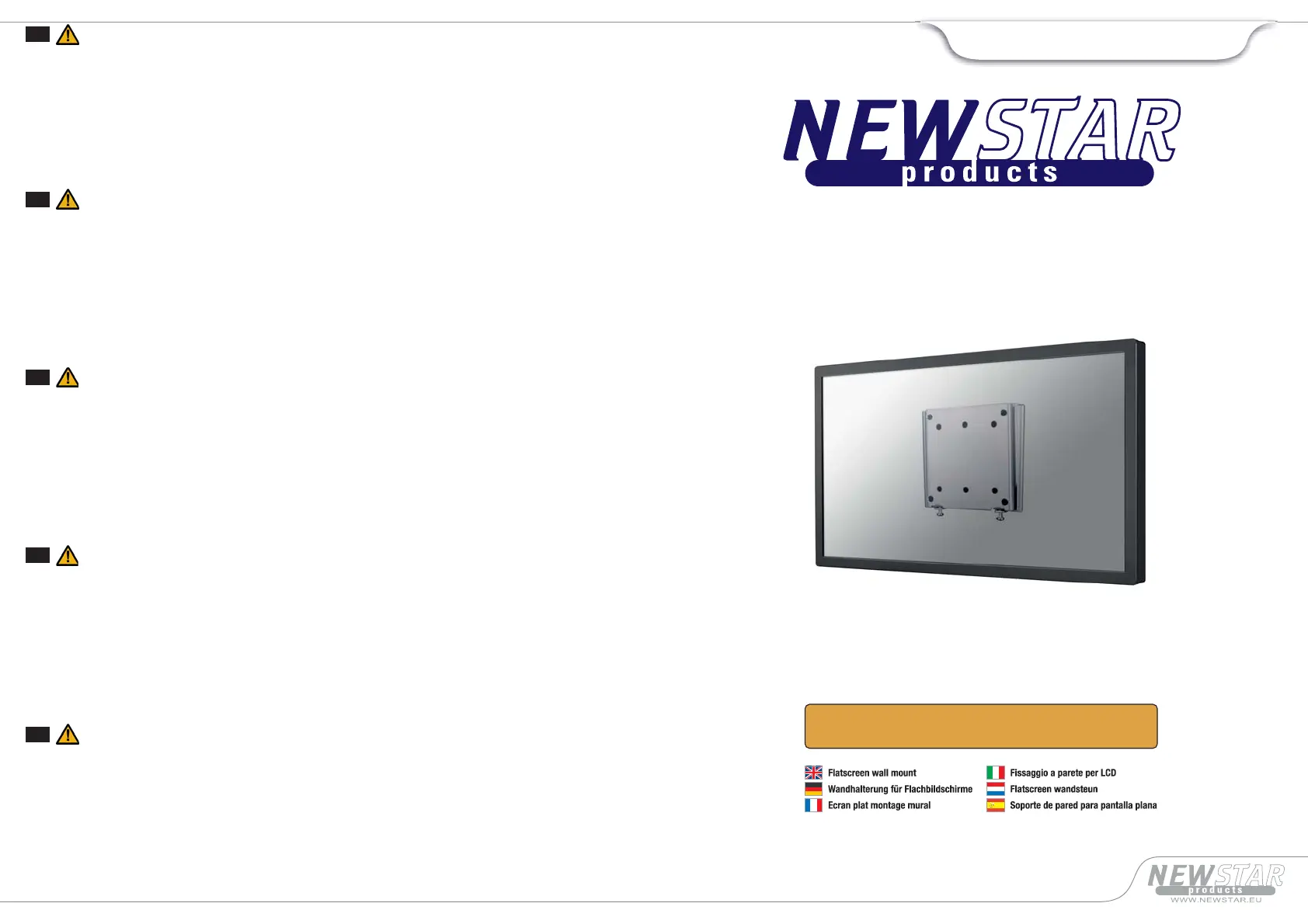 9. The wall should be strong enough to sustain a weight of at least four times of the display and Wall mount bracket combined. The mounting locationmust be able to withstand earthquake or other strong shock.