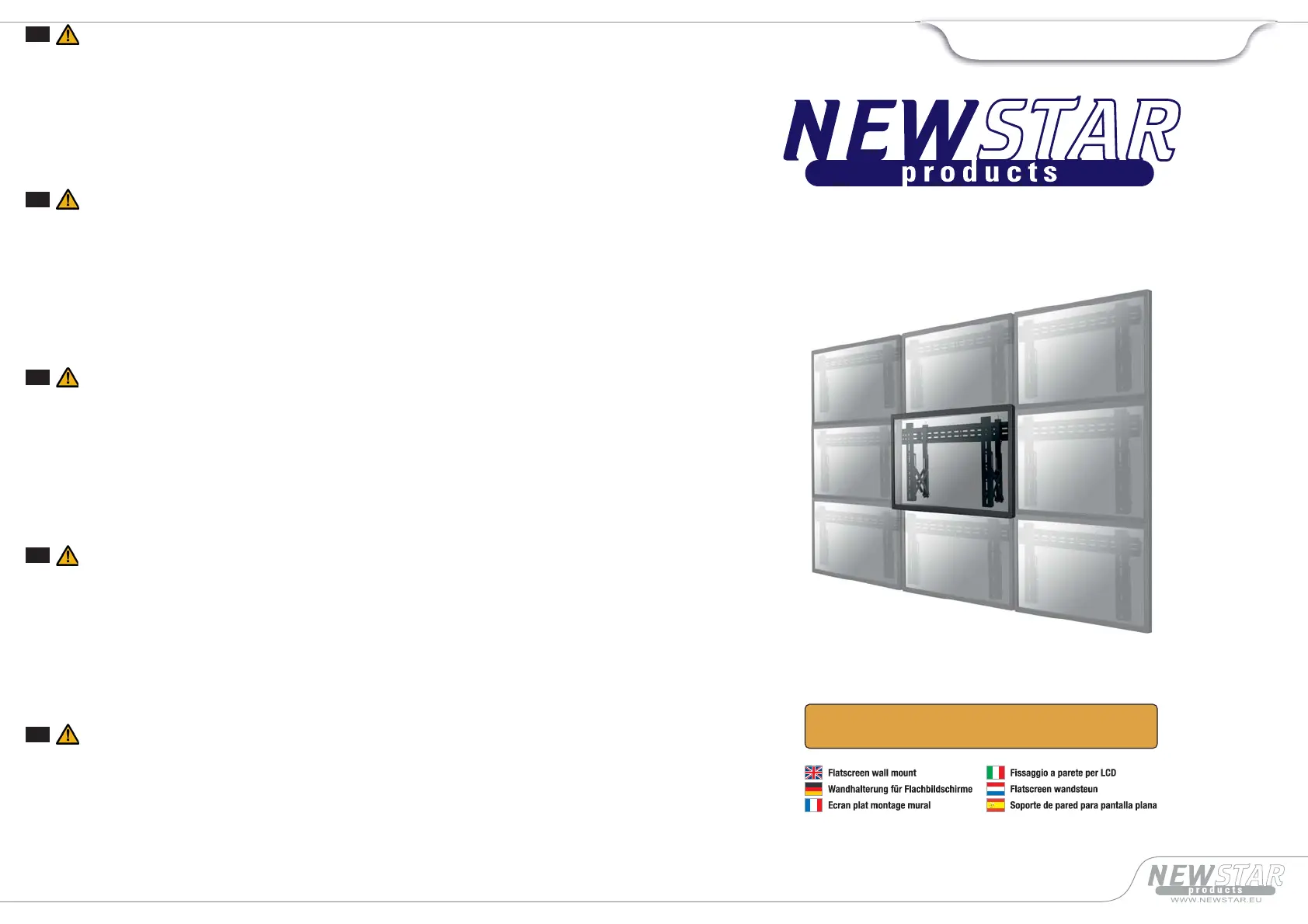 9. The wall should be strong enough to sustain a weight of at least four times of the display and Wall mount bracket combined. The mounting locationmust be able to withstand earthquake or other strong shock.