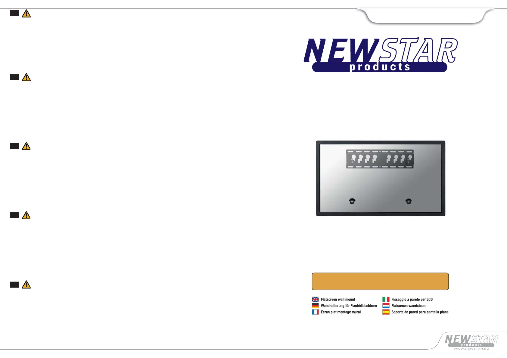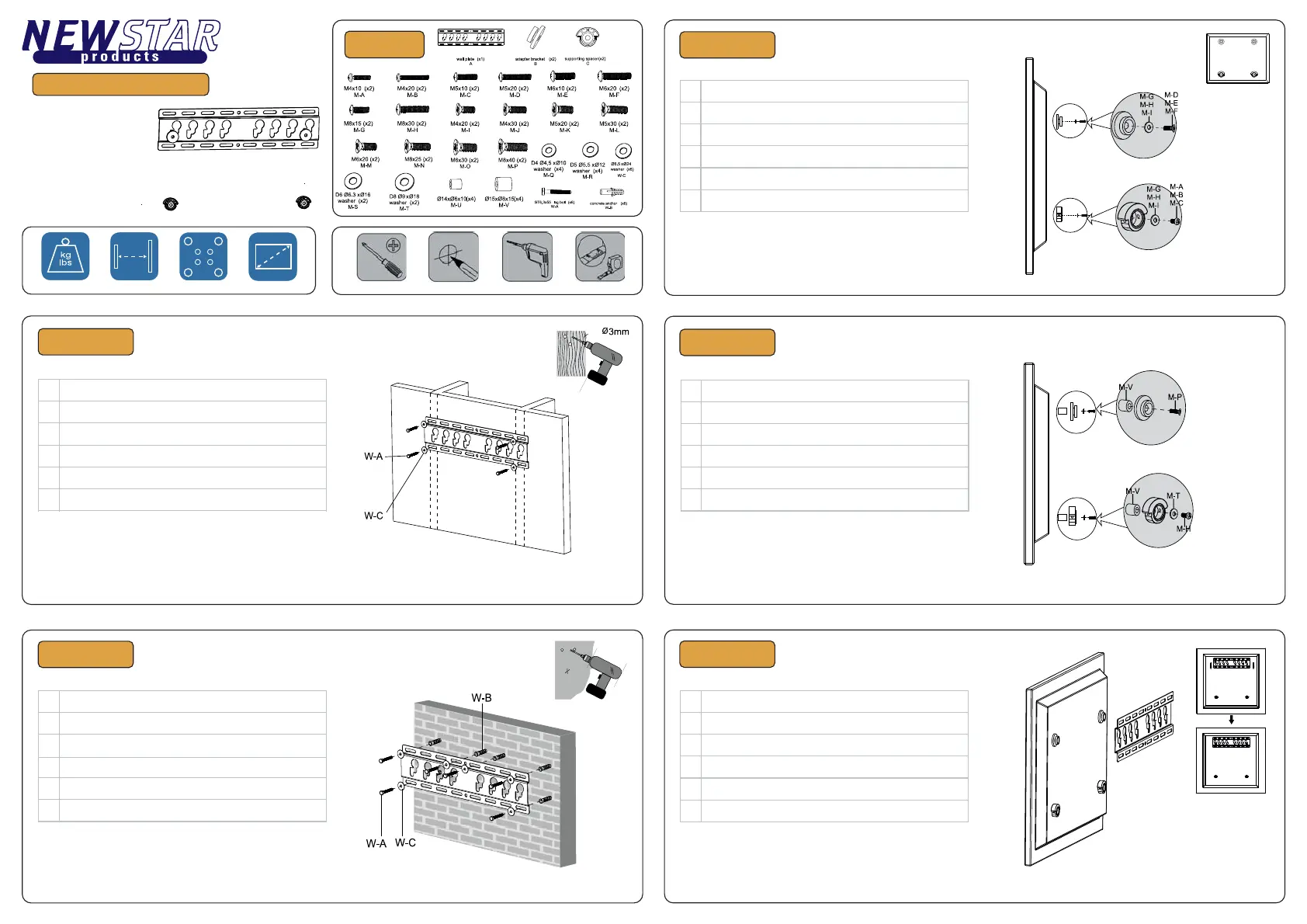 9. The wall should be strong enough to sustain a weight of at least four times of the display and Wall mount bracket combined. The mounting locationmust be able to withstand earthquake or other strong shock.