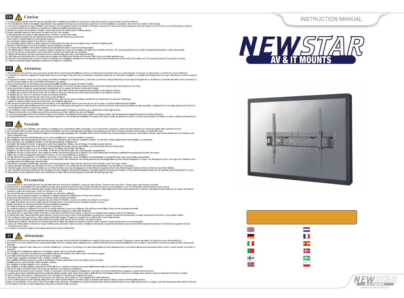 Wandstøtte NewStar Manualer