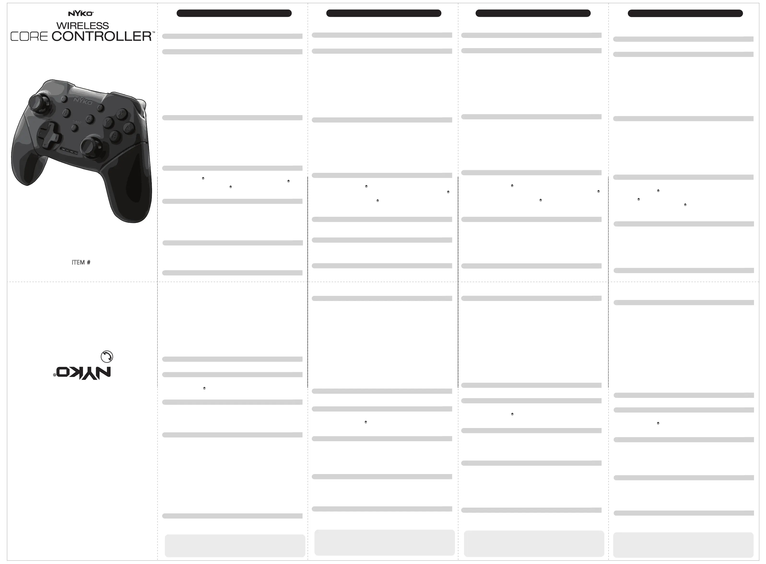 Nyko and Wireless Core Controller are trademarks of Nyko Technologies, Inc. Nintendo® and Nintendo Switch™ are either
