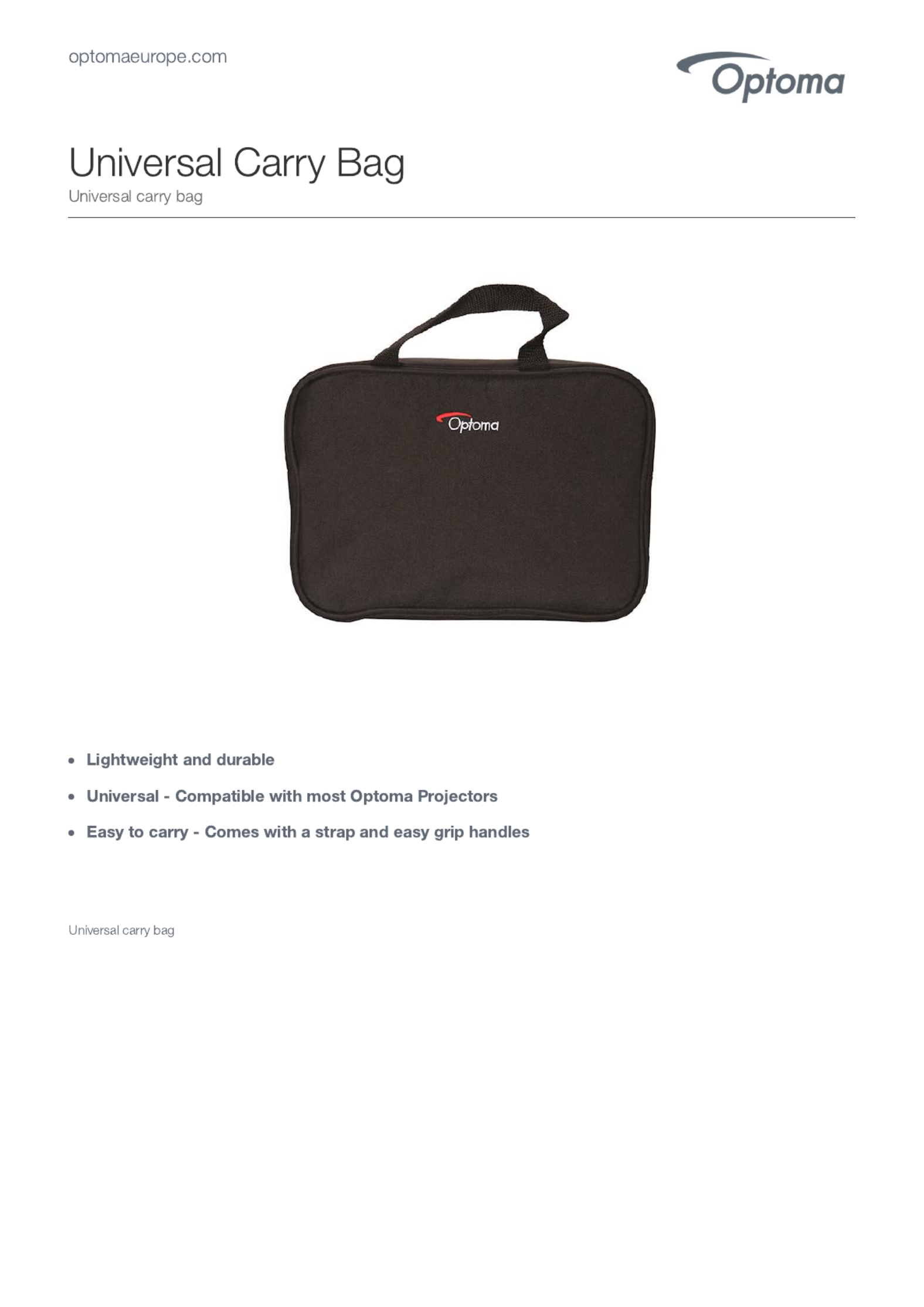 Optoma Universal Carry Bag Manual