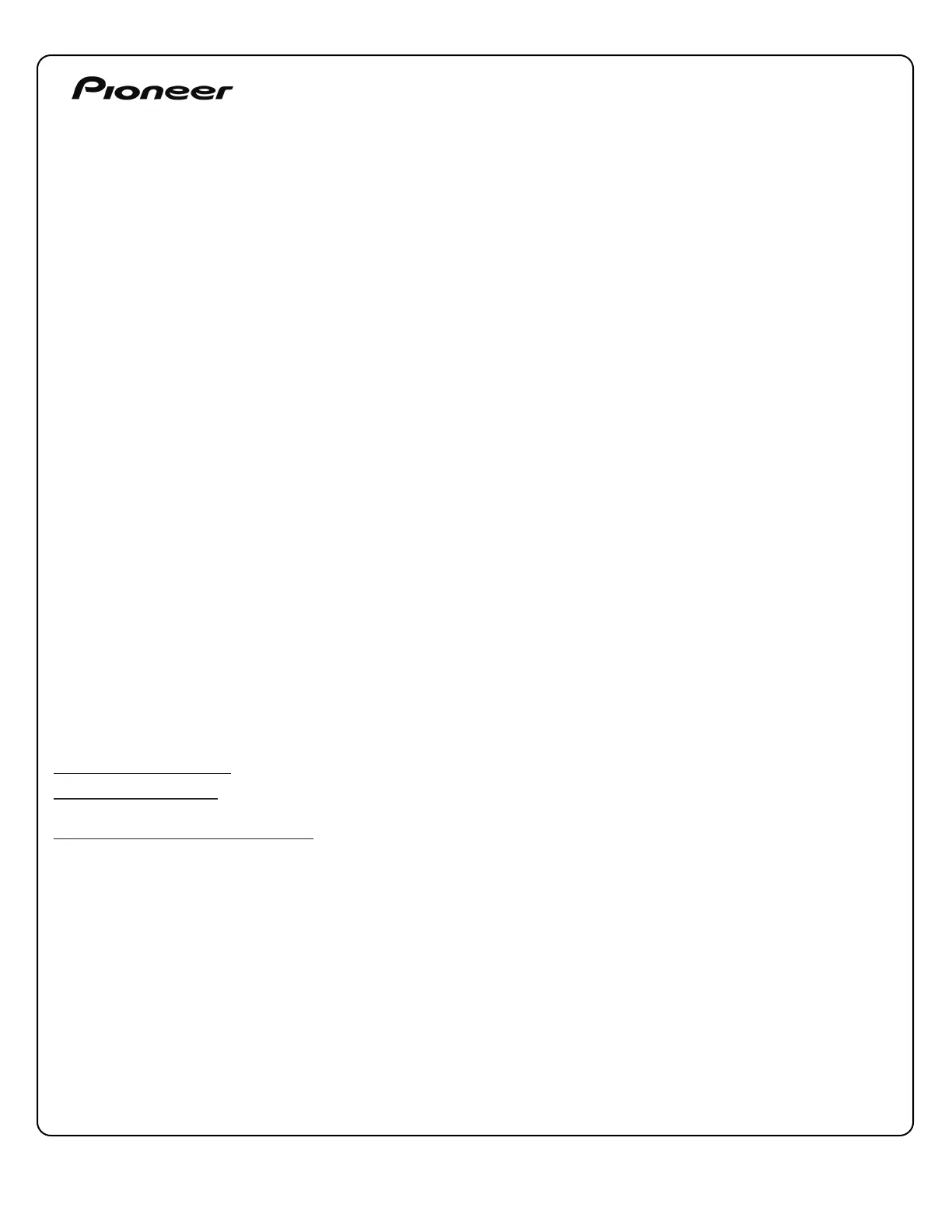 Pour toute question concernant votre produit, veuillez contacter le soutien à la clientèle Pioneer comme décrit ci-dessus ou écrivez-nous à :