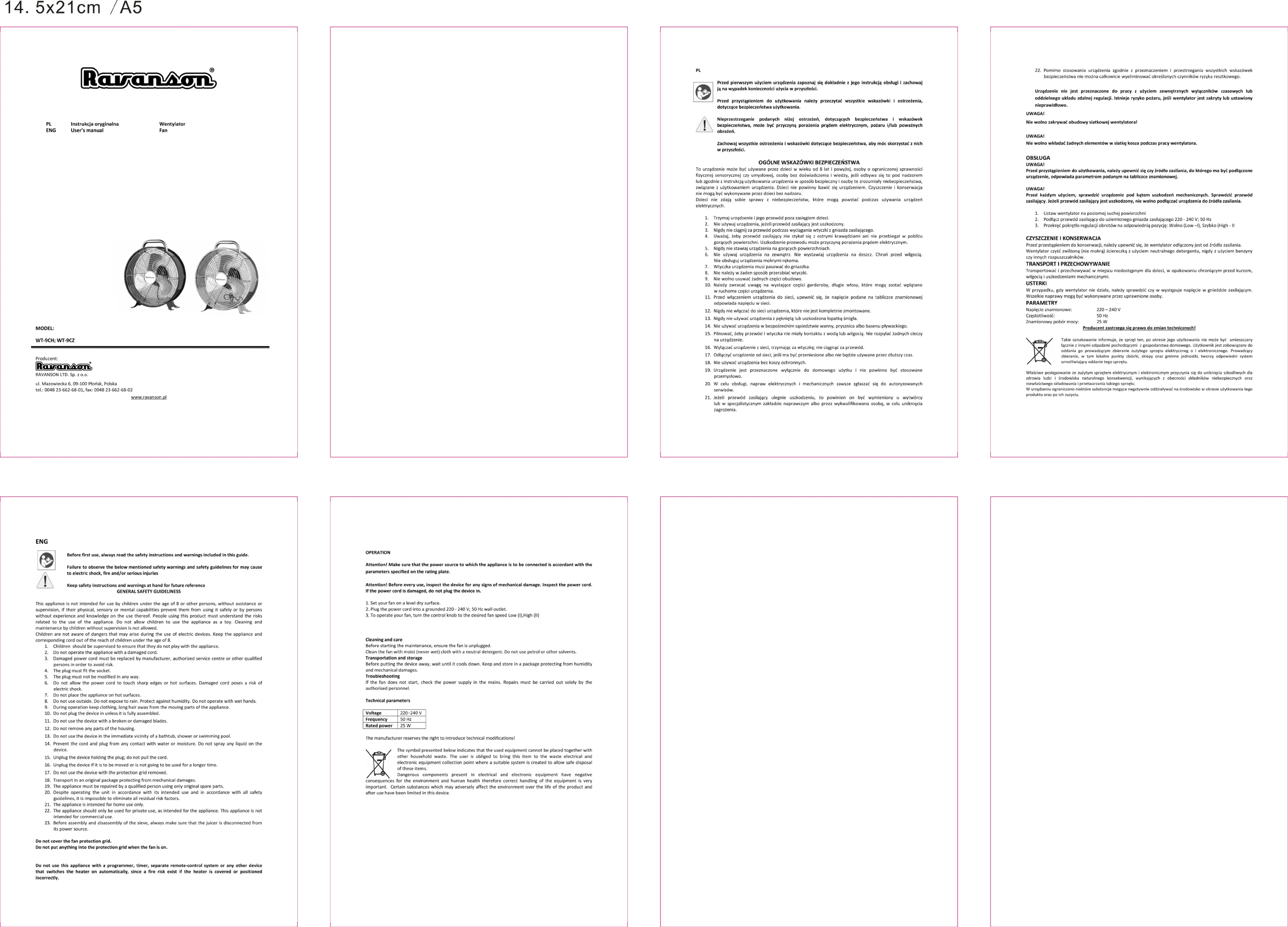 Ravanson WT-9CH Manual