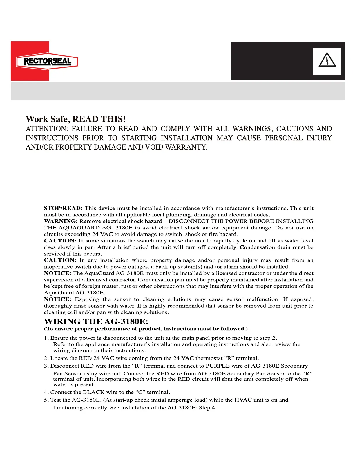 RectorSeal AG-3180E Manual
