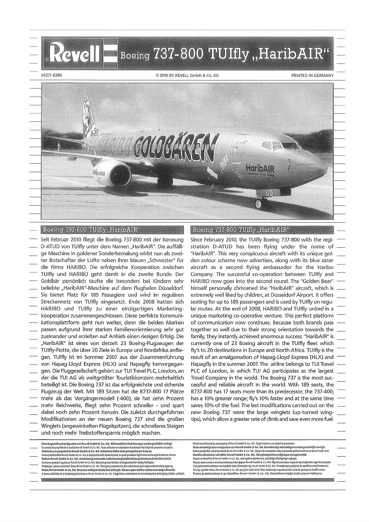Revell Boeing 737-800 TUIfly "HaribAIR" Manual