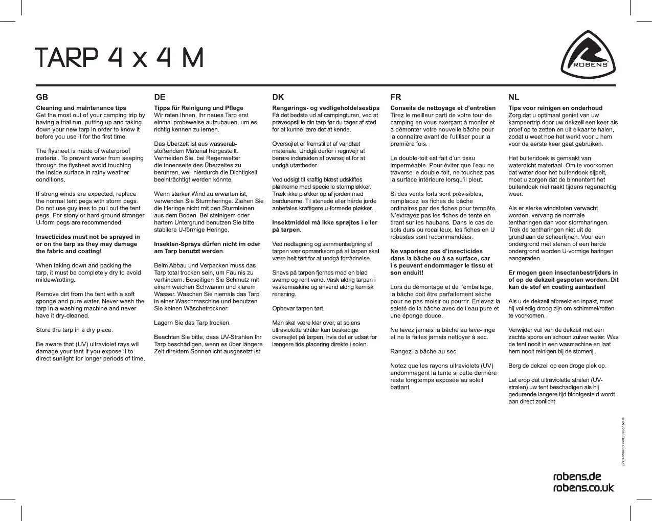 Robens Tarp 4 x 4 M Manual