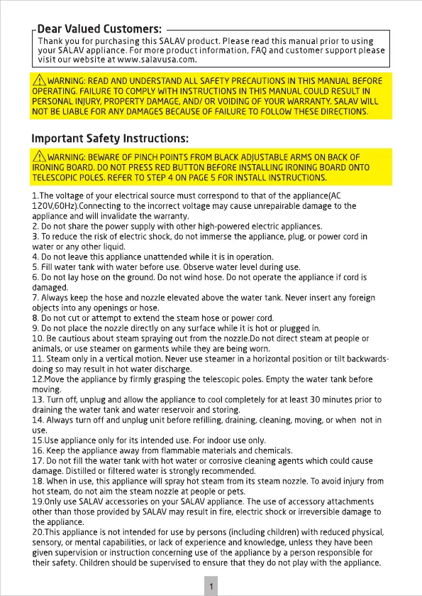 Læs gratis den danske manual til SALAV ST-50 (16 sider) i kategorien Damprenser. Denne vejledning er vurderet som hjælpsom af 36 personer og har en gennemsnitlig bedømmelse på 4.7 stjerner ud af 18.5 anmeldelser.