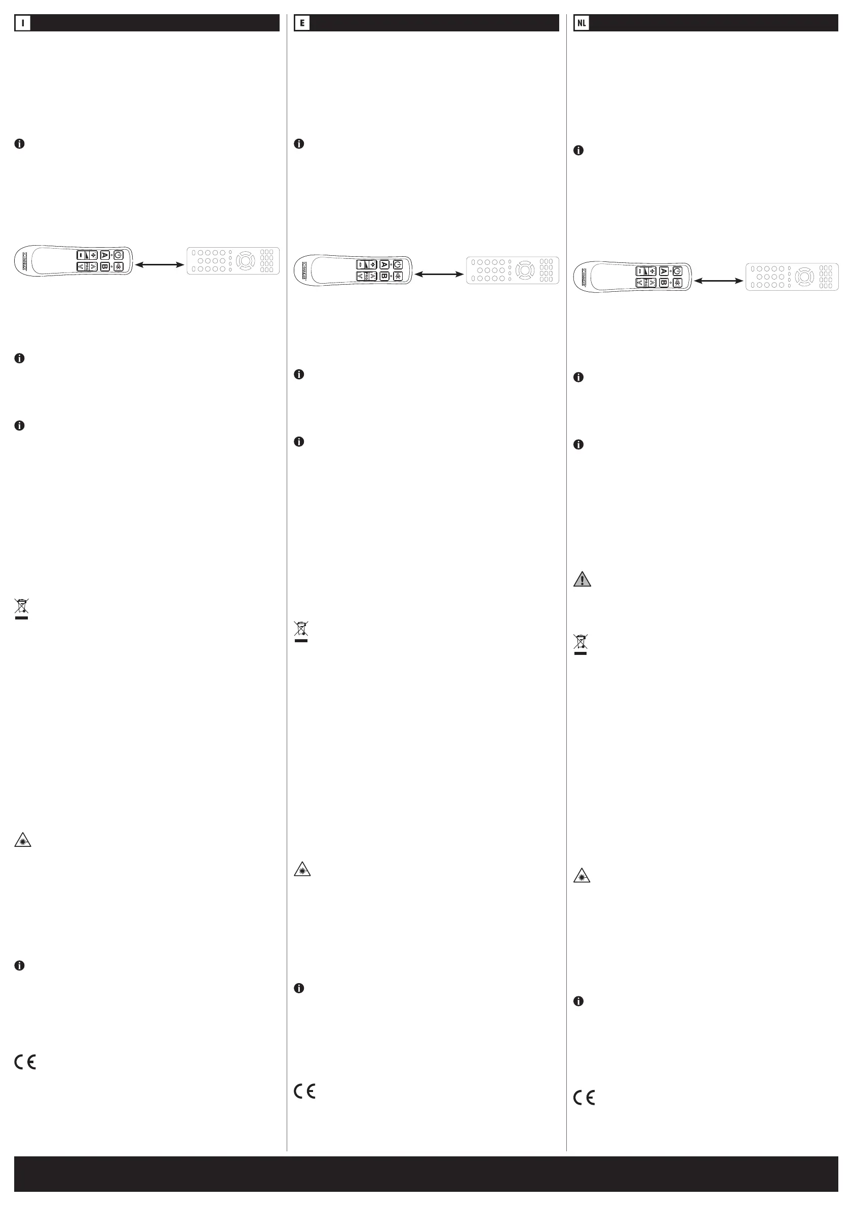 The universal remote control is equipped with an infrared diode of laser class 1. Do not look