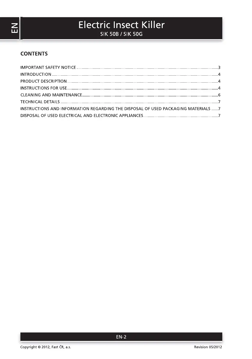 Læs gratis den danske manual til Sencor SIK 50B (8 sider) i kategorien Skadedyrsbekæmper. Denne vejledning er vurderet som hjælpsom af 24 personer og har en gennemsnitlig bedømmelse på 5.0 stjerner ud af 12.5 anmeldelser.