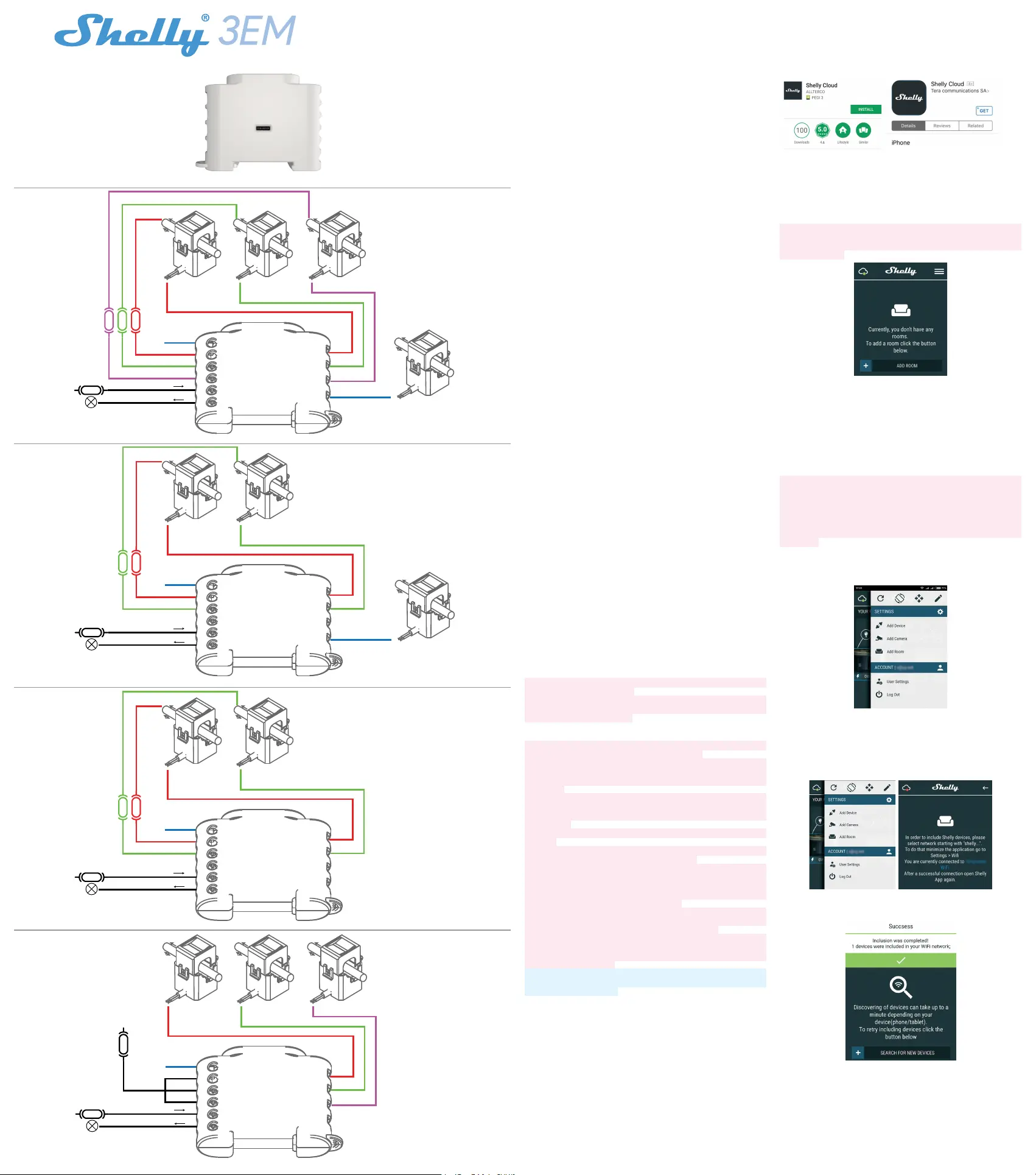 (turned down breakers). Connect Shelly 3EM to the power grid and install it
