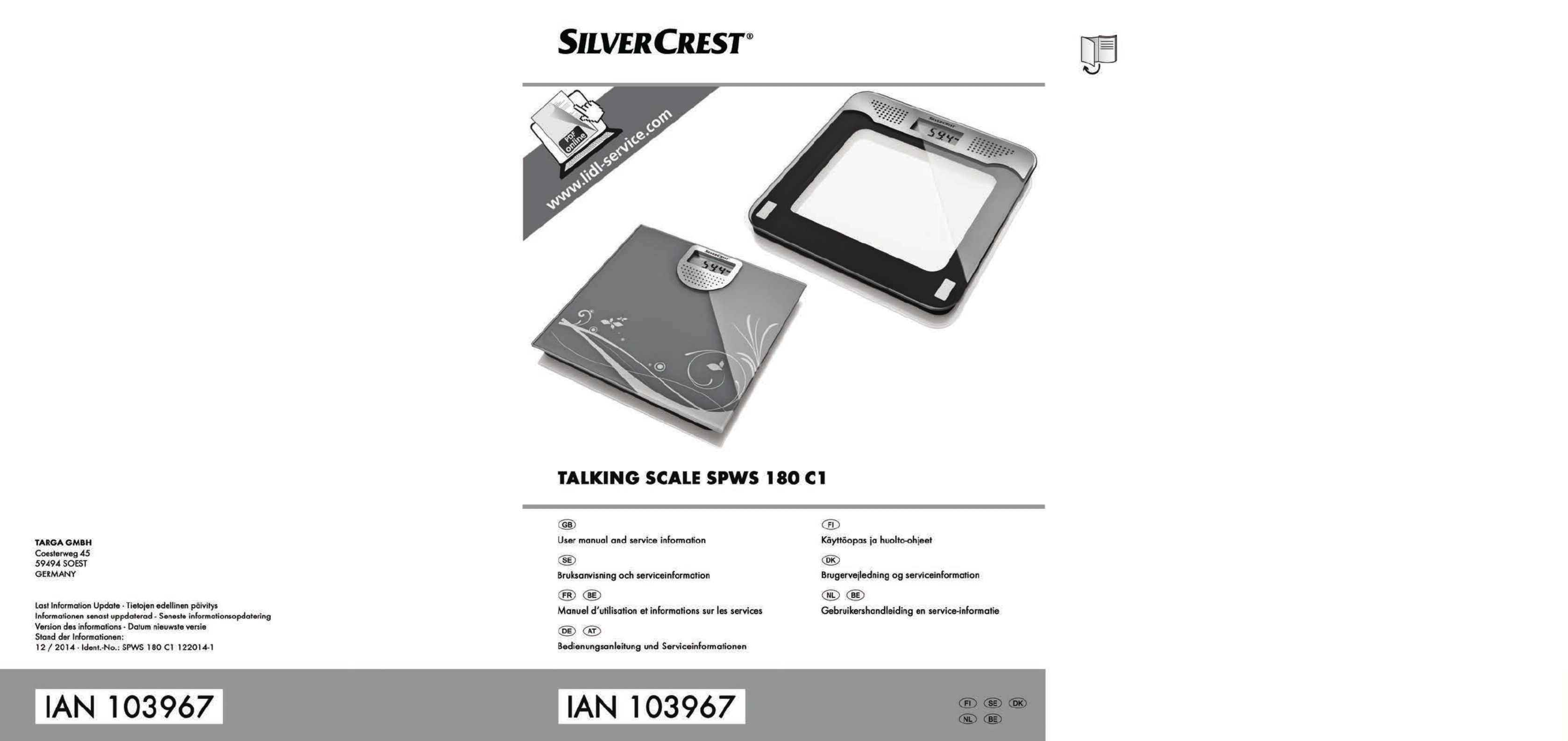 SilverCrest SPWS 180 D1 Manual