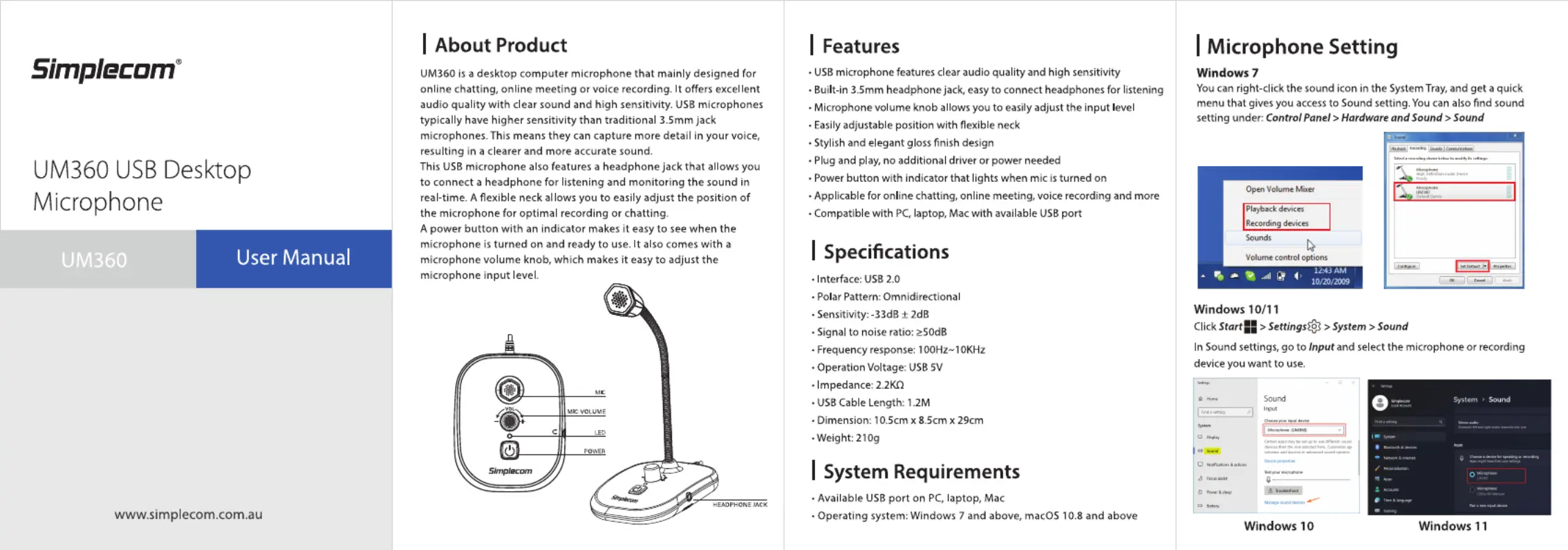 Læs gratis den danske manual til Simplecom UM360 (2 sider) i kategorien Mikrofon. Denne vejledning er vurderet som hjælpsom af 30 personer og har en gennemsnitlig bedømmelse på 4.9 stjerner ud af 15.5 anmeldelser.