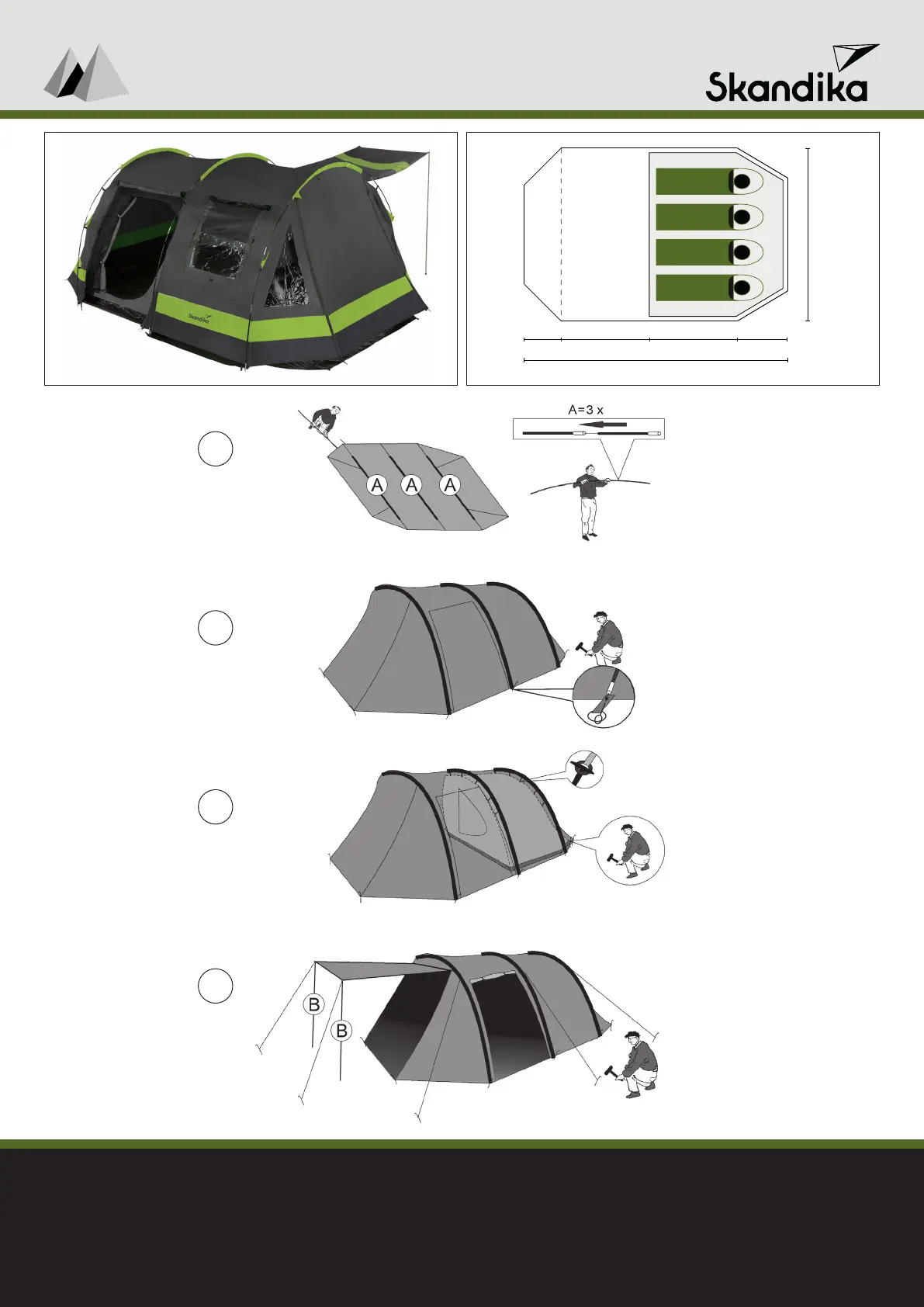 Læs gratis den danske manual til Skandika Kambo 4 (2 sider) i kategorien Telt. Denne vejledning er vurderet som hjælpsom af 17 personer og har en gennemsnitlig bedømmelse på 3.5 stjerner ud af 9 anmeldelser.