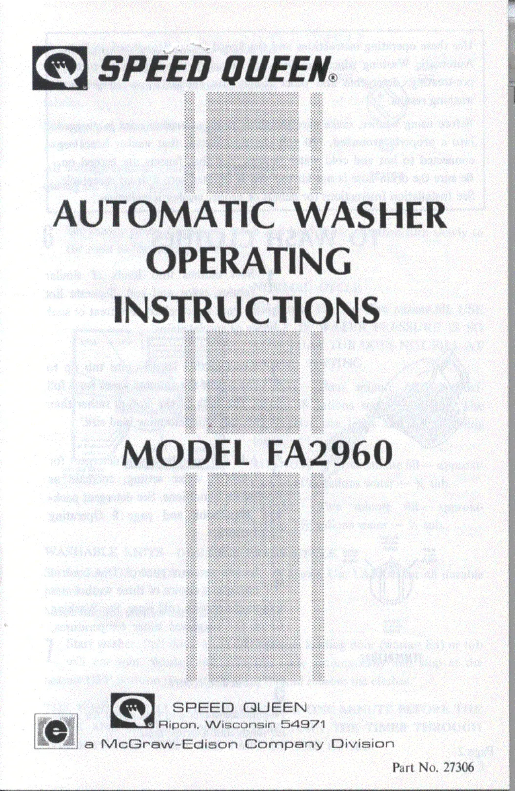Speed Queen FA2960 Manual