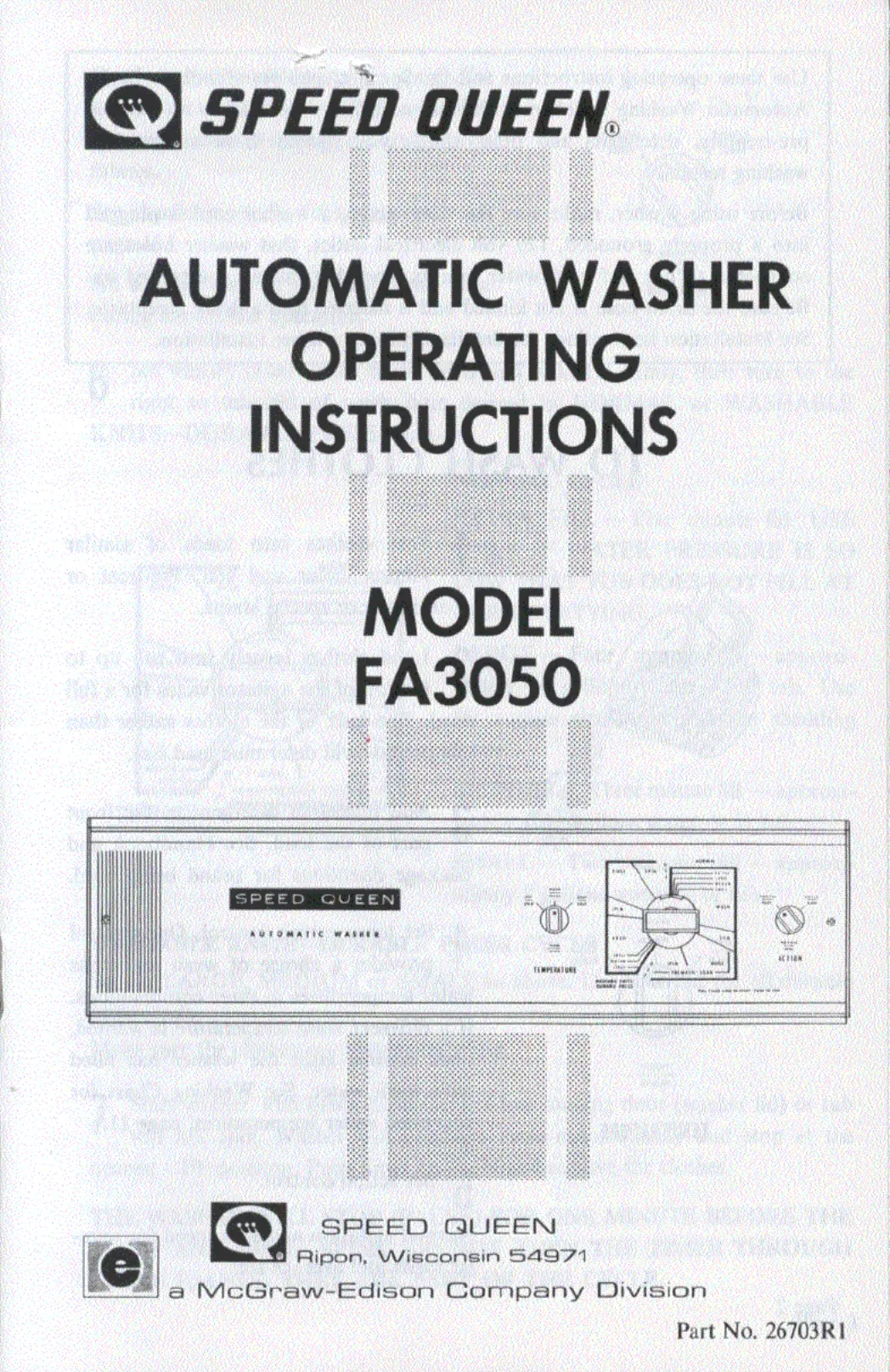Speed Queen FA3050 Manual