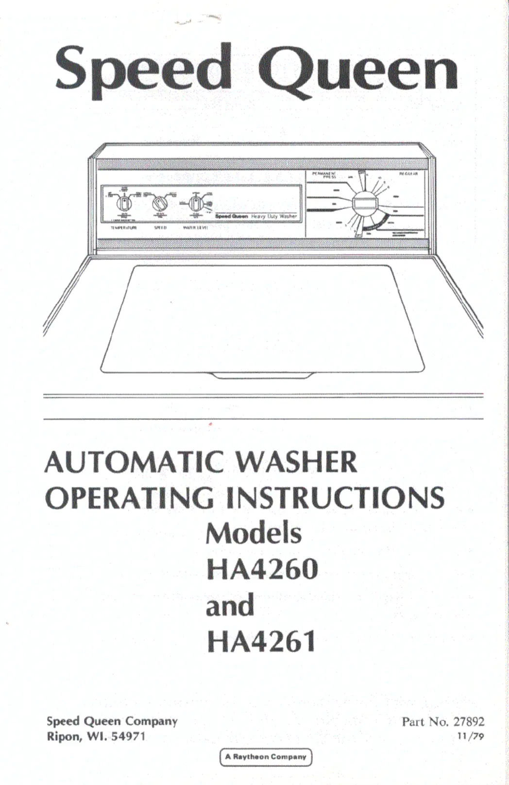 Speed Queen HA4260 Manual