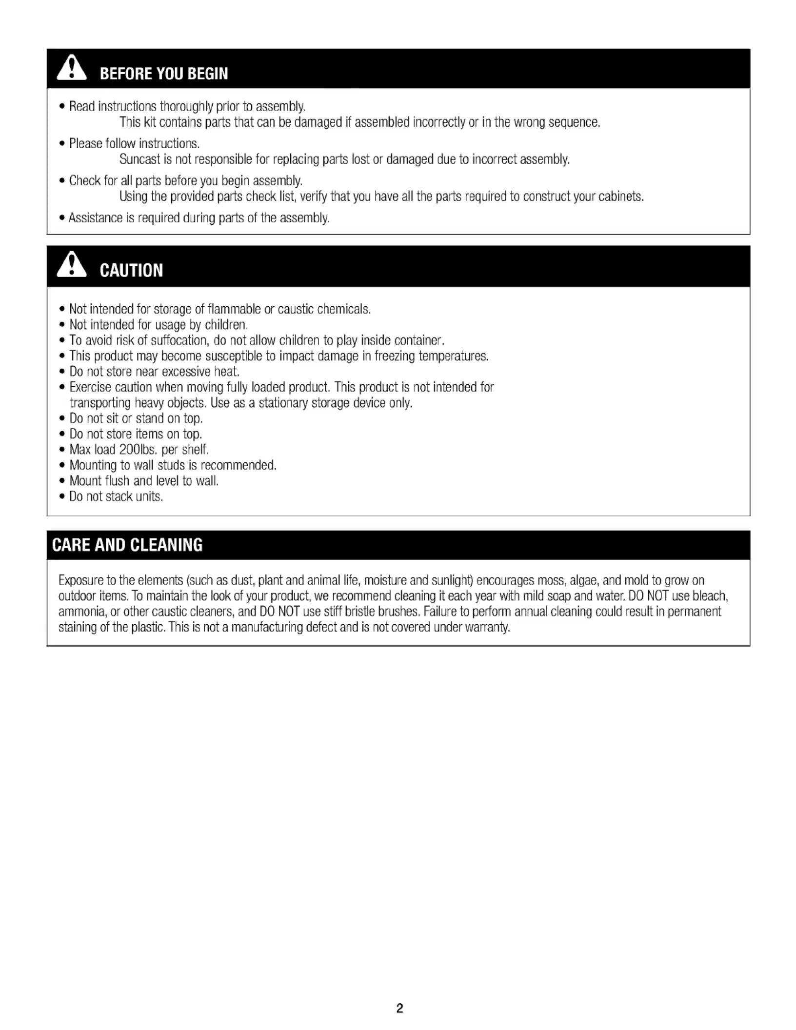 Vault Suncast Manualer