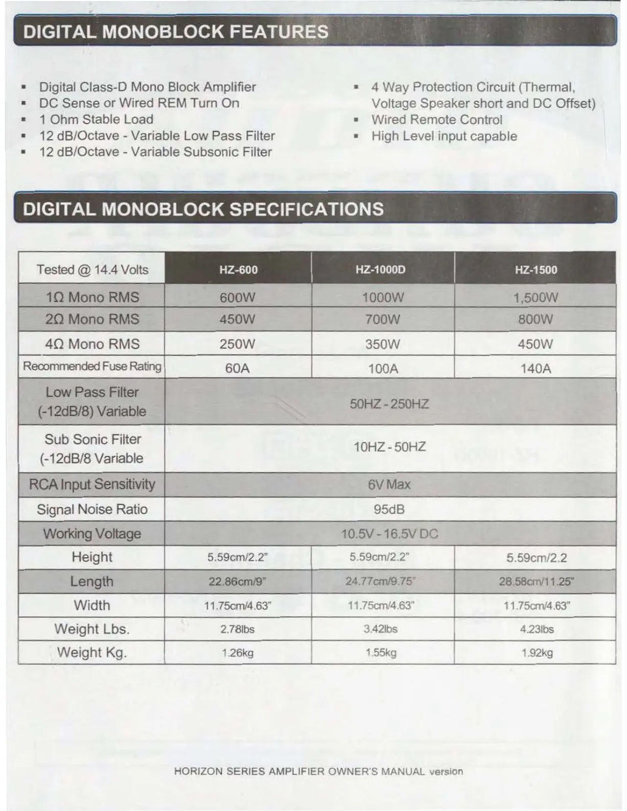 HORIZON SERIES AMPLIFIER OWN