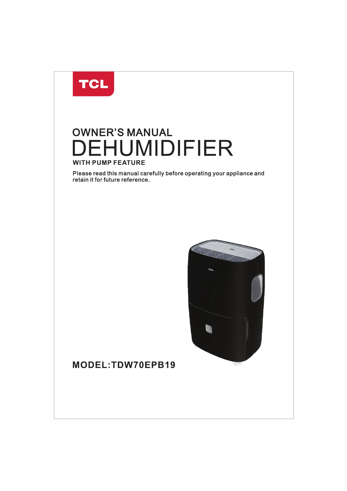 Læs gratis den danske manual til TCL TDW70EPB19 (32 sider) i kategorien Luftfugter. Denne vejledning er vurderet som hjælpsom af 7 personer og har en gennemsnitlig bedømmelse på 4.5 stjerner ud af 4 anmeldelser.