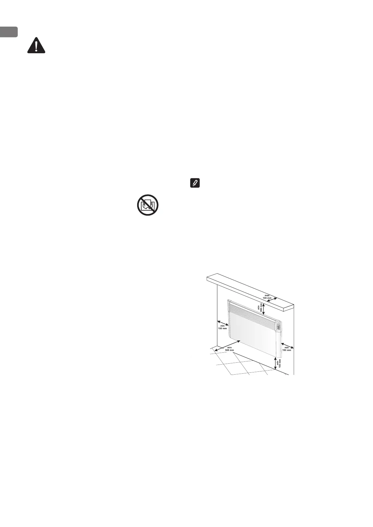 panel heater, minimum safe distances must be observed