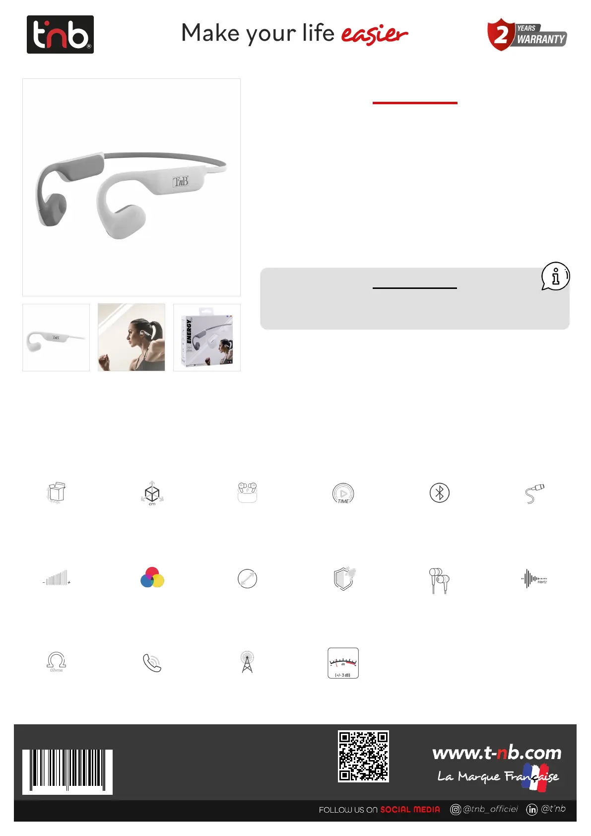 Læs gratis den danske manual til T'nB Energy Air (2 sider) i kategorien Hovedtelefon. Denne vejledning er vurderet som hjælpsom af 15 personer og har en gennemsnitlig bedømmelse på 4.8 stjerner ud af 8 anmeldelser.