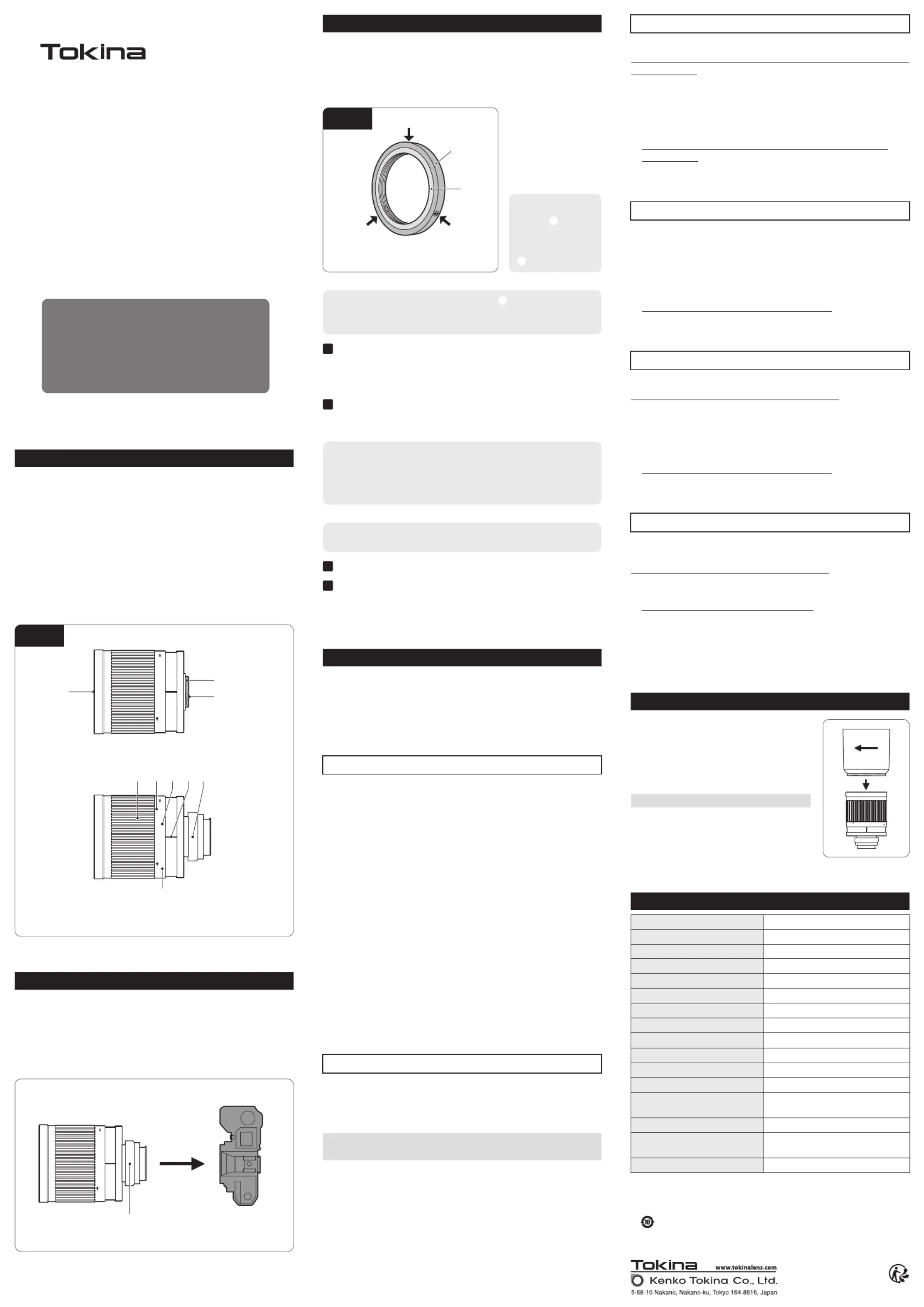 Tokina SZX 400mm f/8 Reflex MF Lens Kit Manual