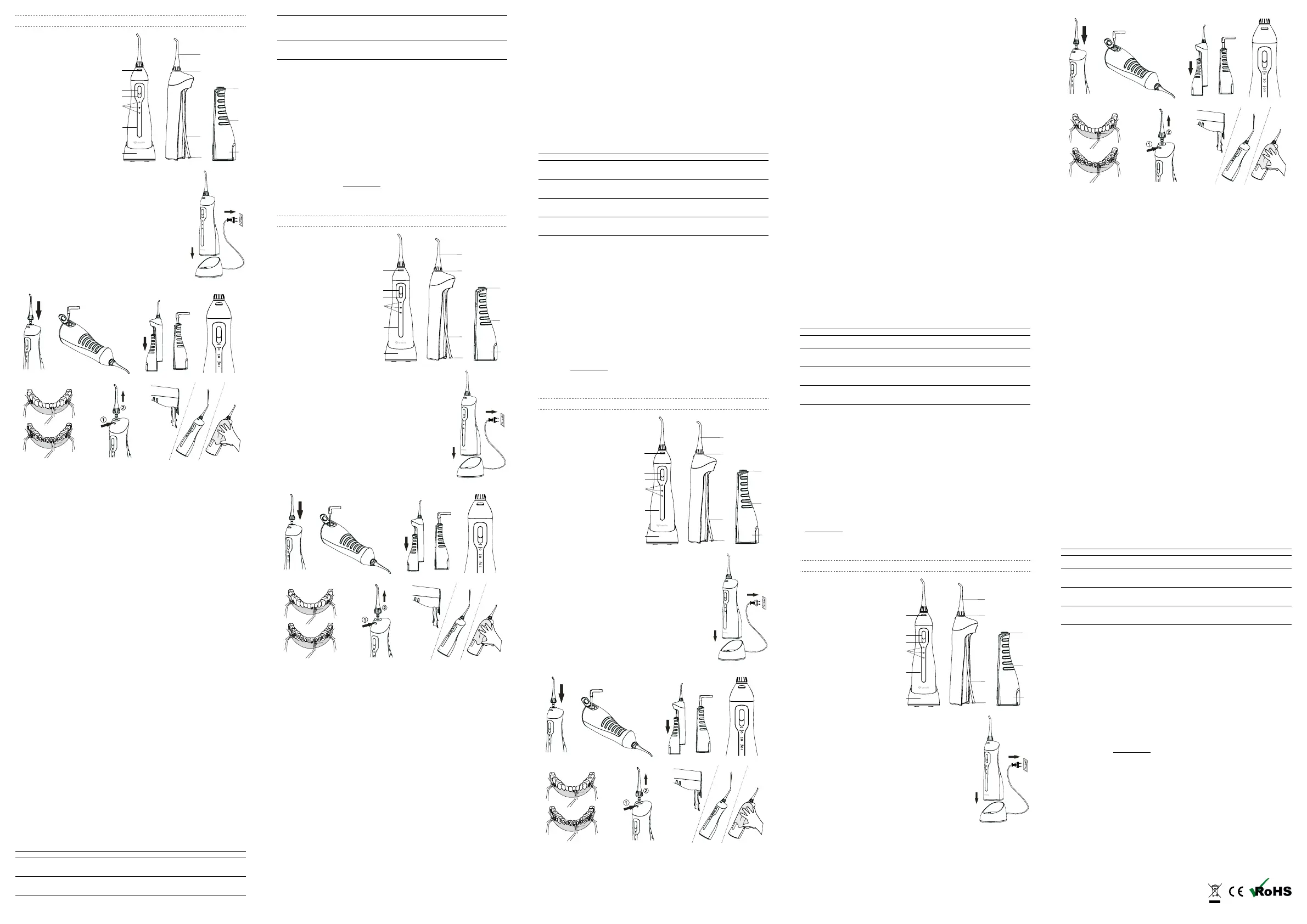 90°na zube i desni. Polako prelazite mlazom vode oko zuba. Usmjerite mlaz vode u desni i u pro-