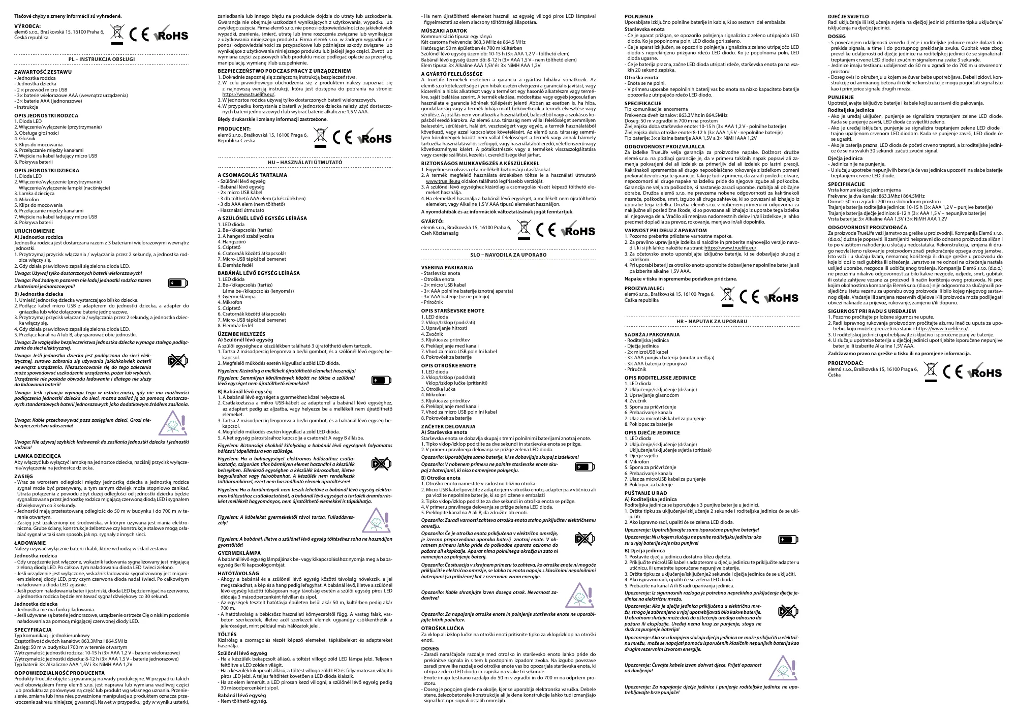 Za proizvode TrueLife važi jamstvo za greške u proizvodnji. Kompanija Elem6 s.r.o.