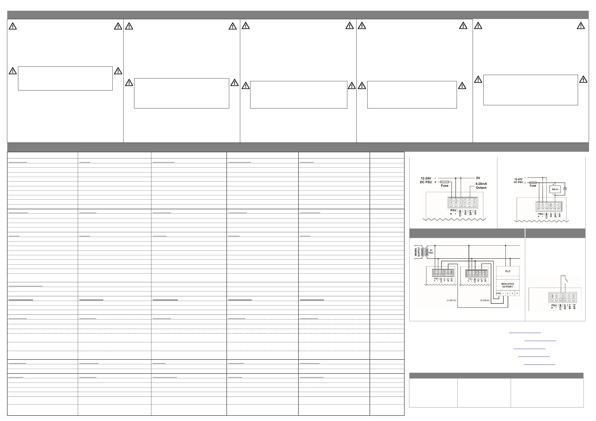 Output Ausgangsbereiche Sortie Salida Uscita 4-20 mA