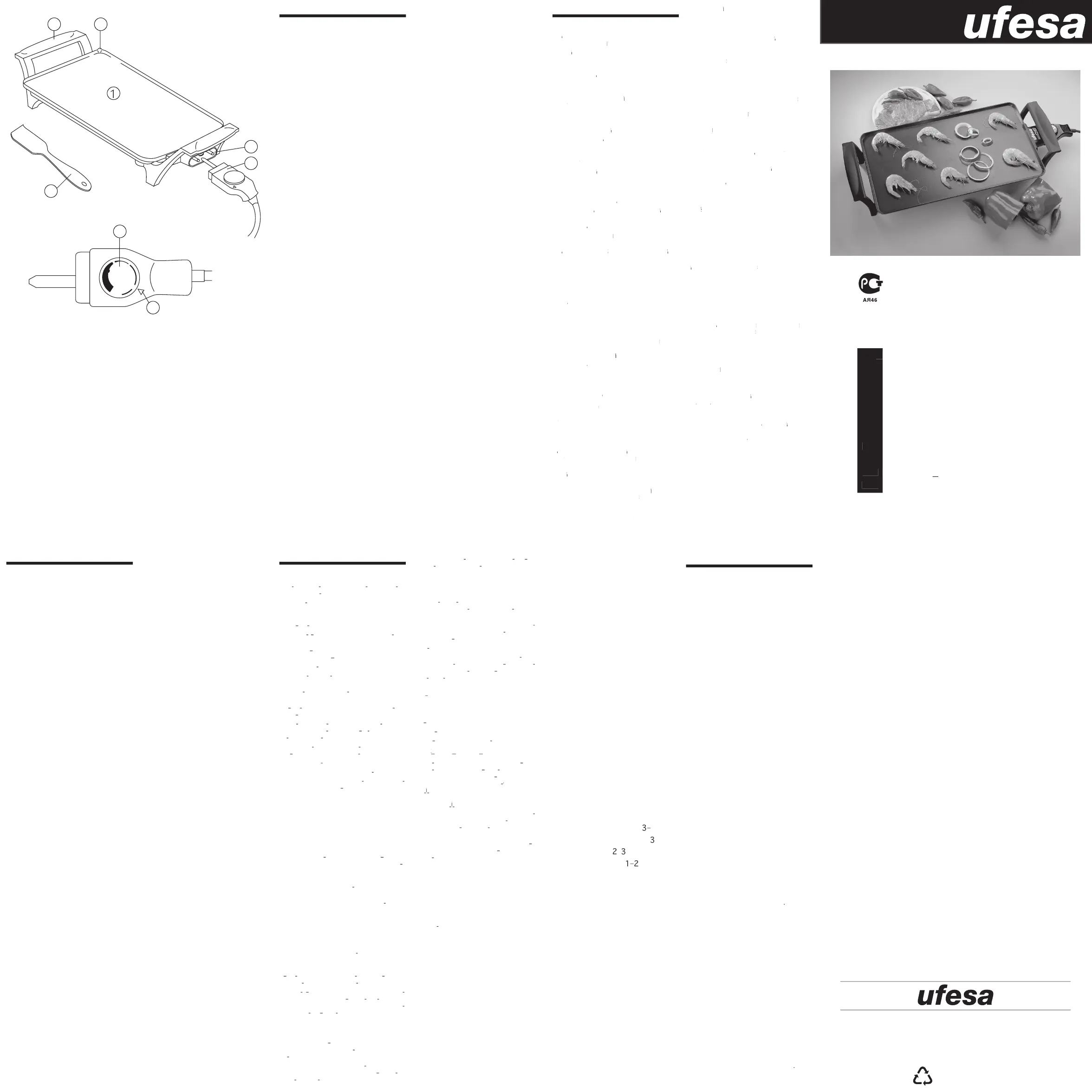 • WARNING, hot surfaces! Never touch the griddle