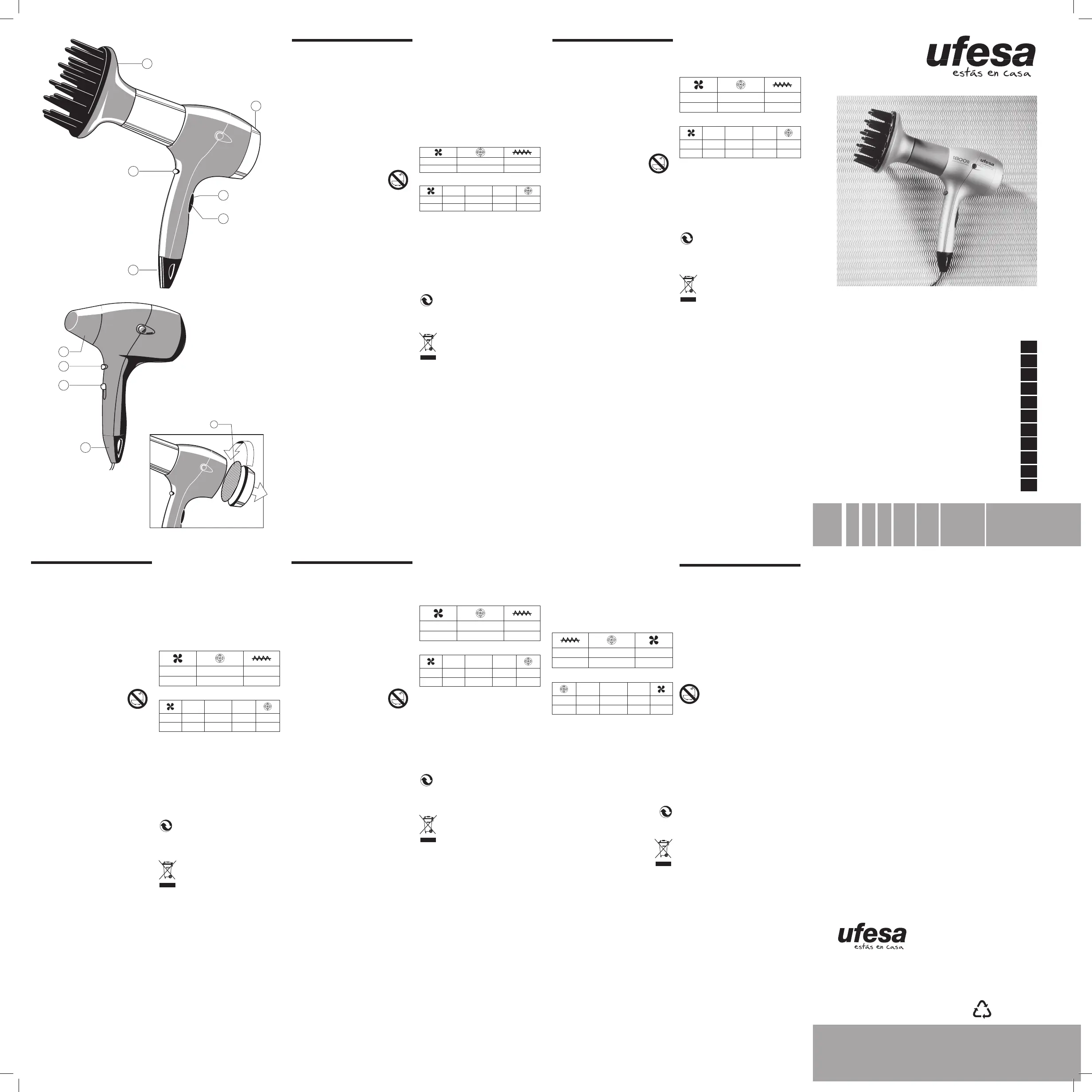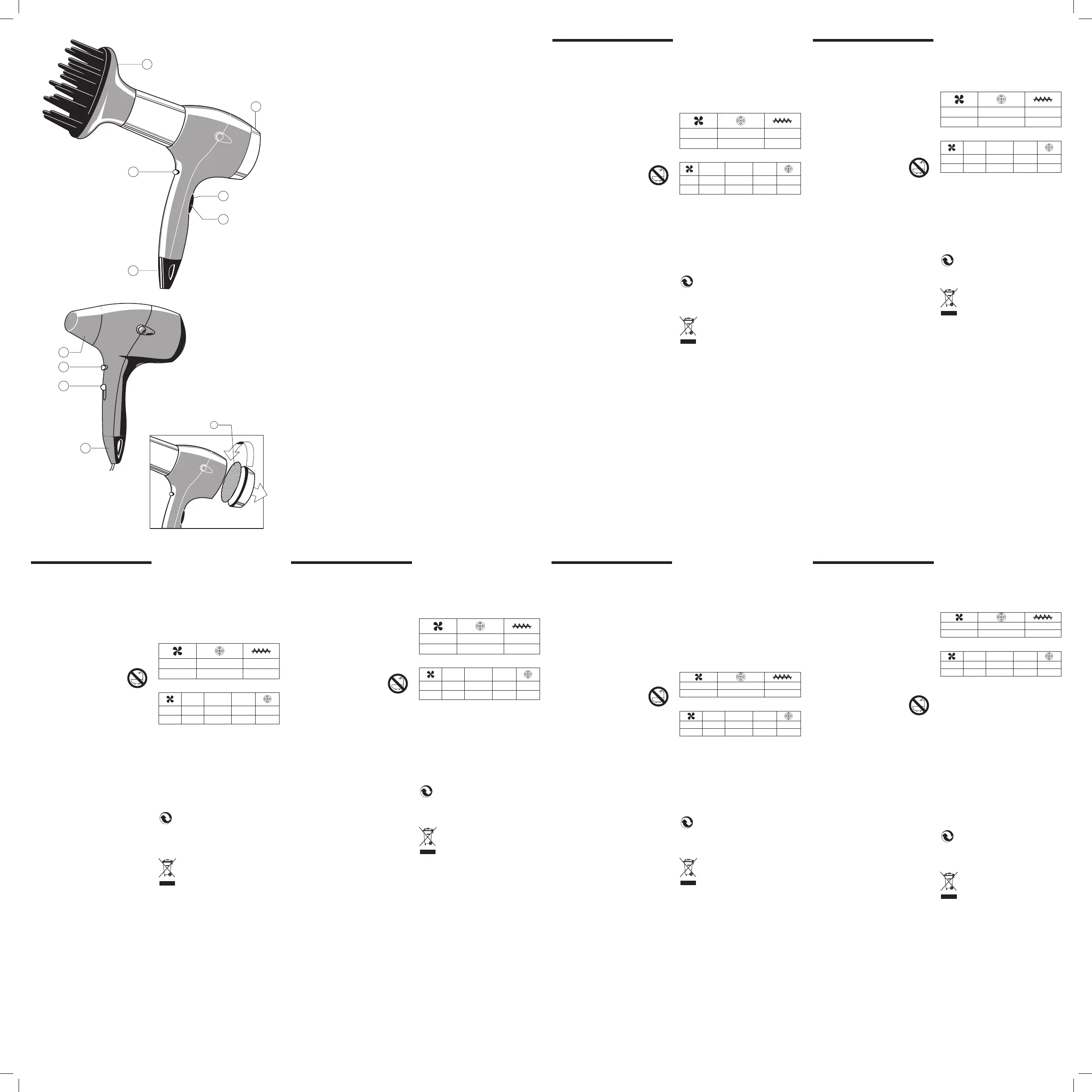 • Never switch on the hair dryer if the cable or