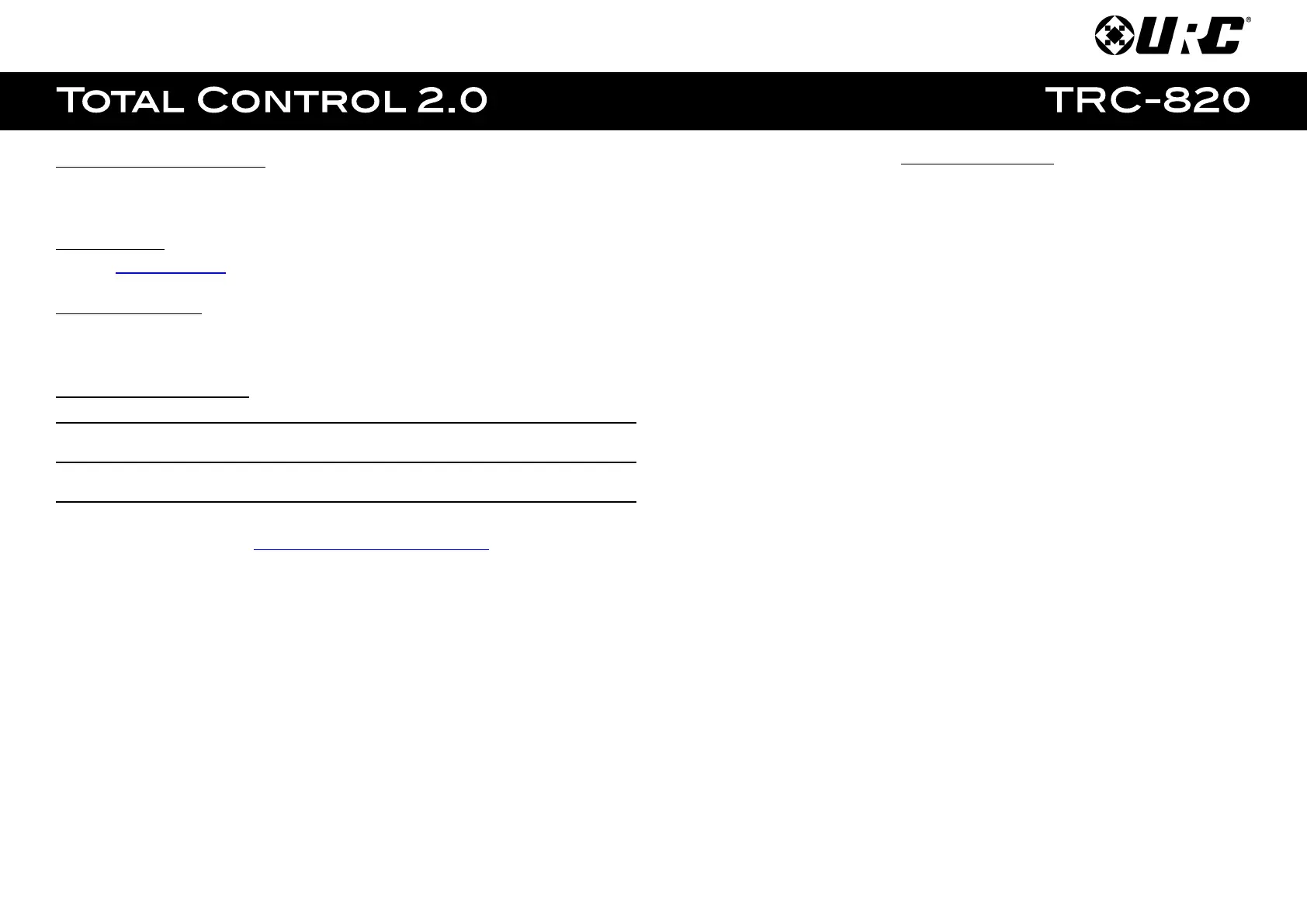 Thank you for purchasing URC’s TRC-820 remote control. Its easy and intuitive use helps to