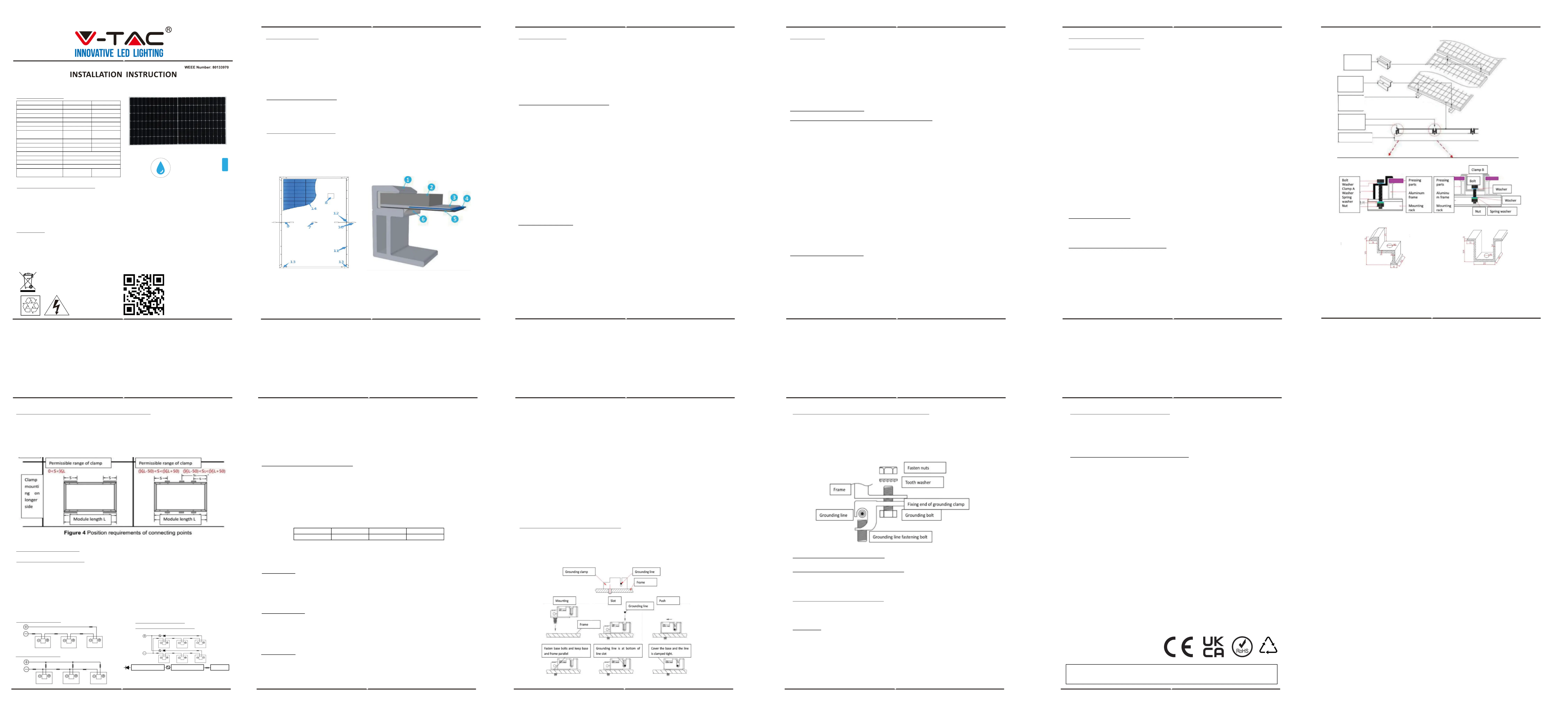 V-TAC recommends must thoroughly detail the attachment means in the module installation instructions.