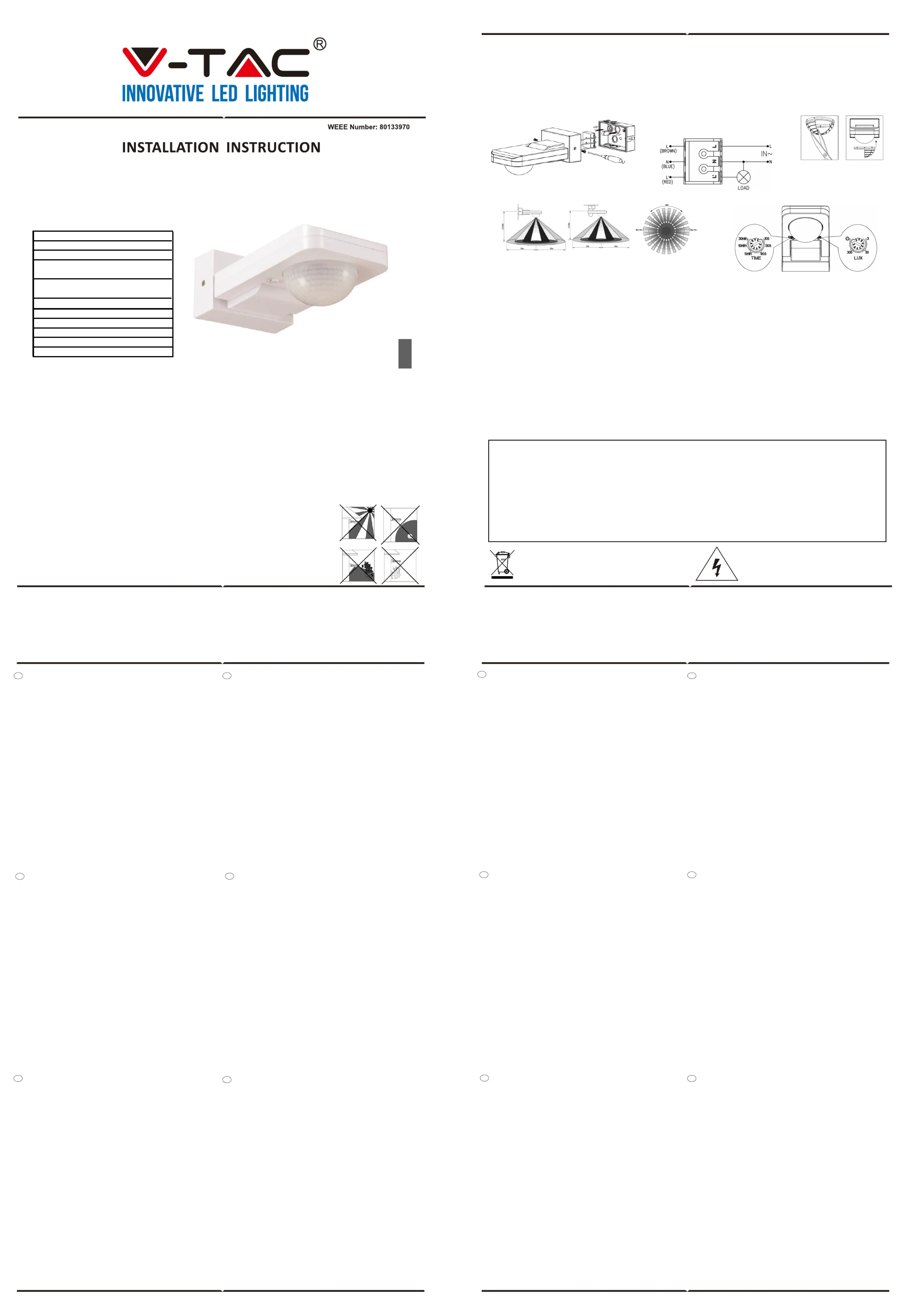 (V-TAC) vám nabízí ty nejlepší výrobky. Před zahájením instalace si prosím