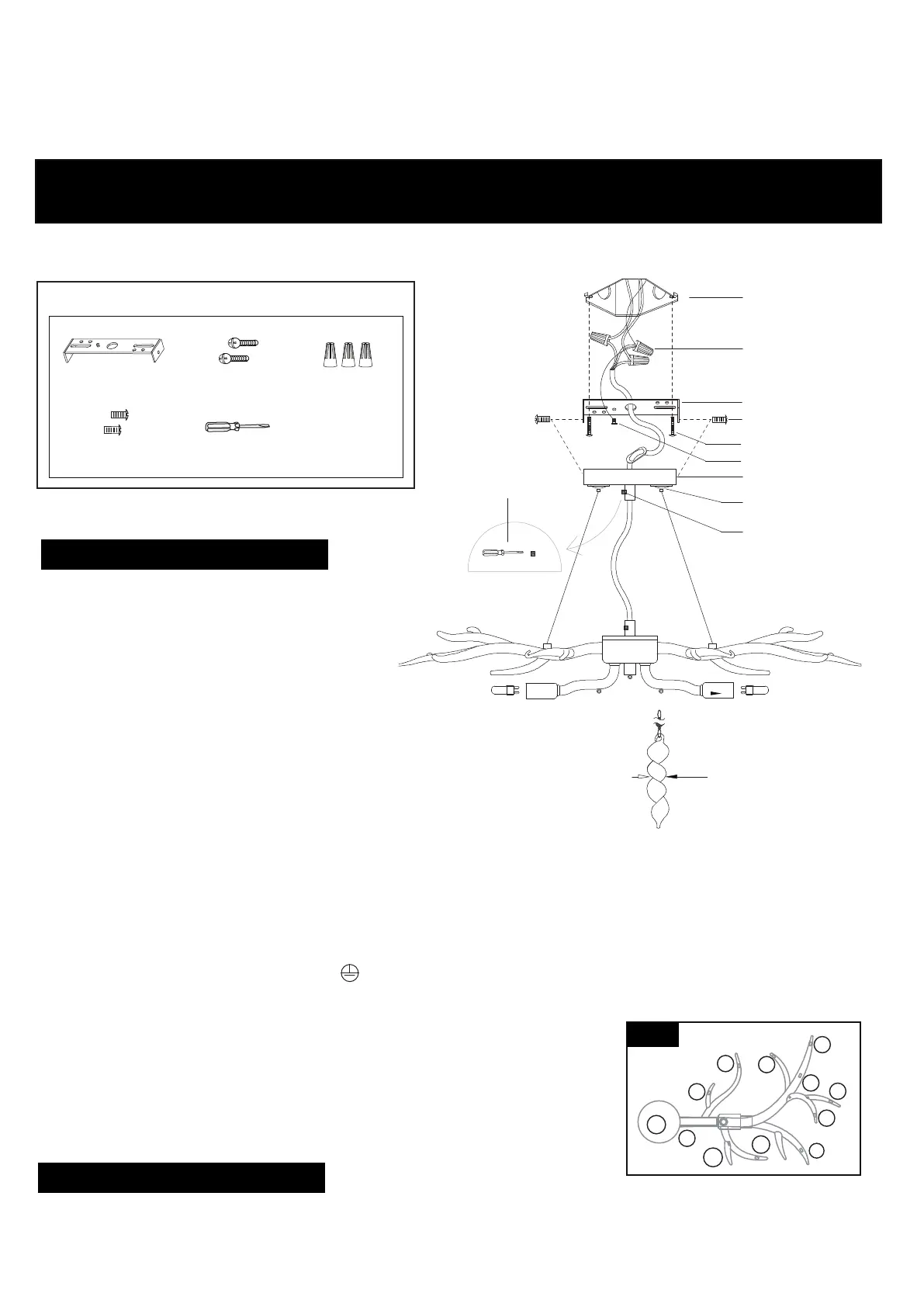 --- Attach the fixture ground wire (labeled ) to the mounting strap with the green ground screw.