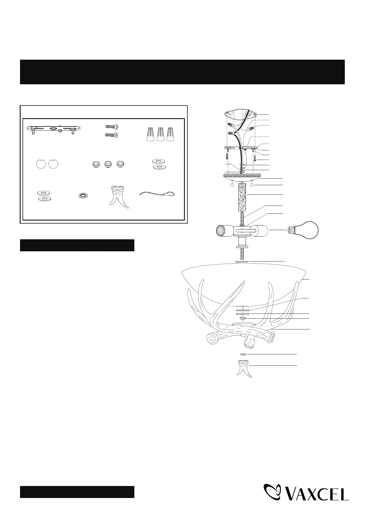 7. Attach the antler set upward to the glass shade carefully by inserting the threaded pipe, and then secure