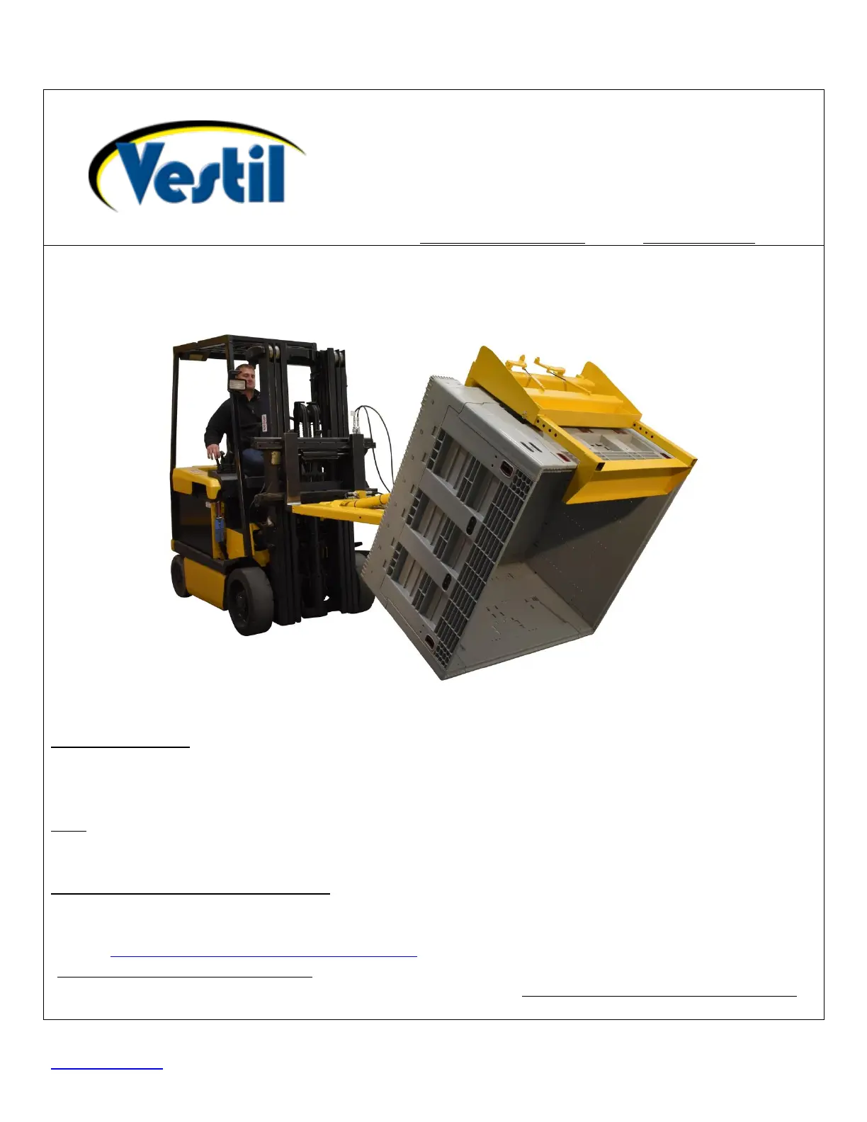 Read and understand this entire manual before installing, using, or servicing this crate dumper. Keep this