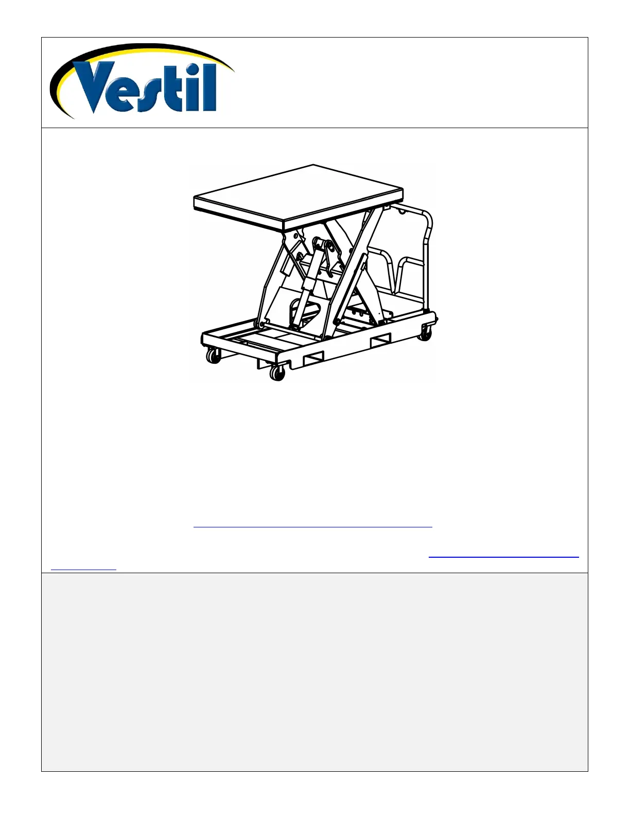 TABLE OF CONTENTS Copyright 2020 Vestil Manufacturing Corp. Page 1 of 26