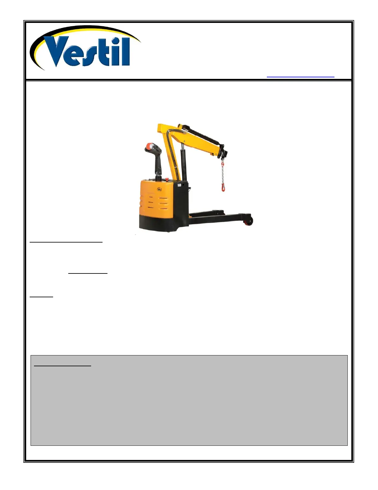 Copyright 2016 Vestil Manufacturing Corp. Page 1 of 7