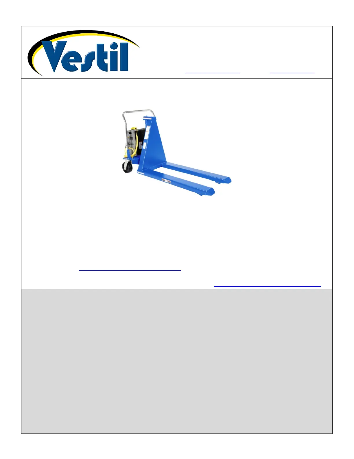 Additional copies of this instruction manual may be downloaded from https://www.vestil.com/page-manuals.php